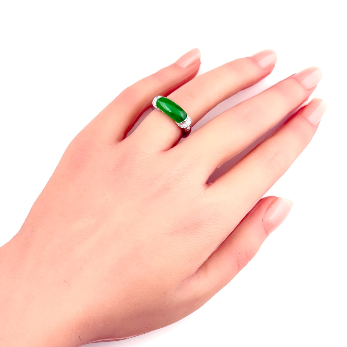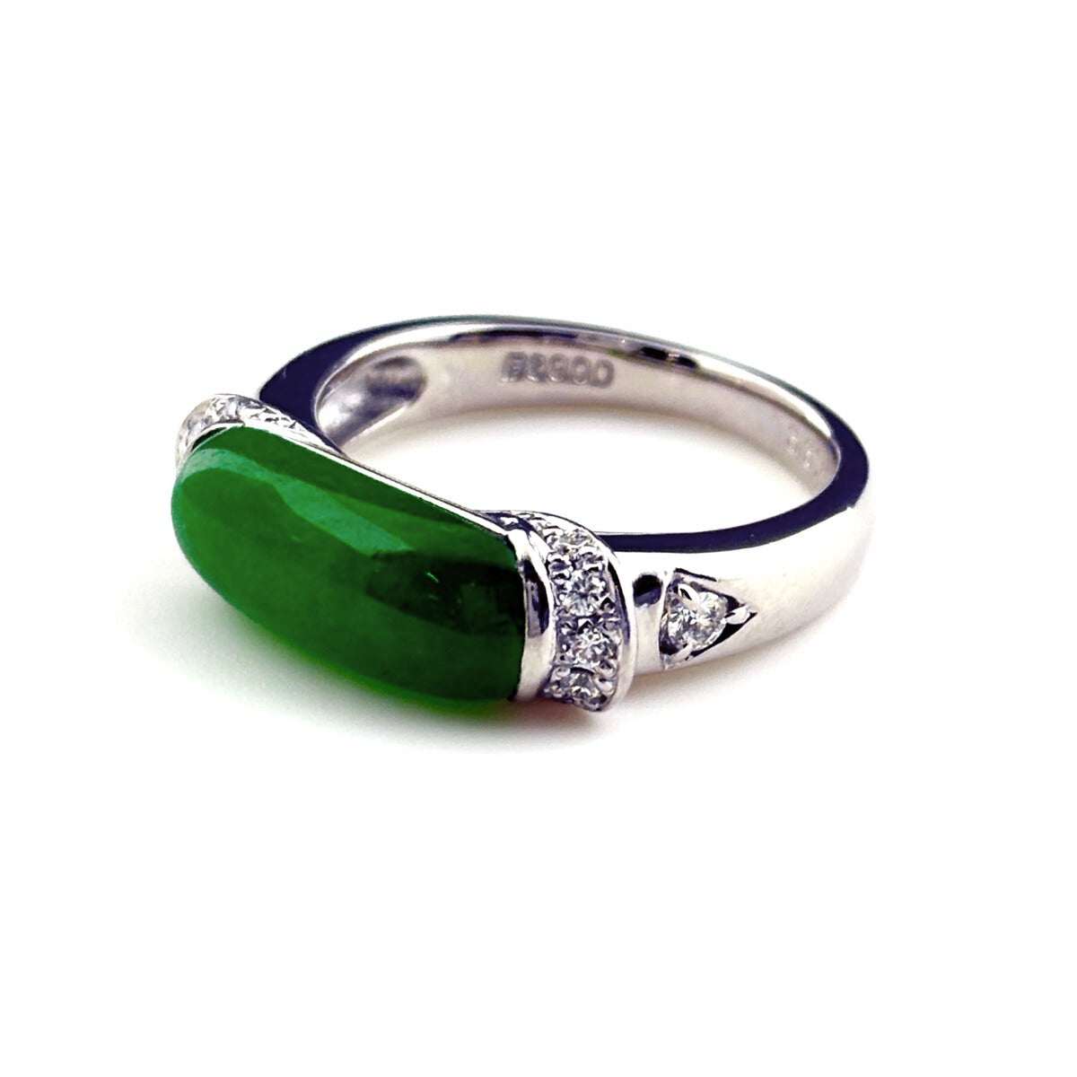 翡翠 デザインリング プラチナ 指輪 メレダイヤ リング 10号 Pt900 ダイヤモンド レディース ノンブランドジュエリー 【中古】nbjwl