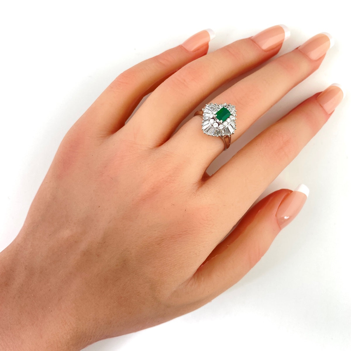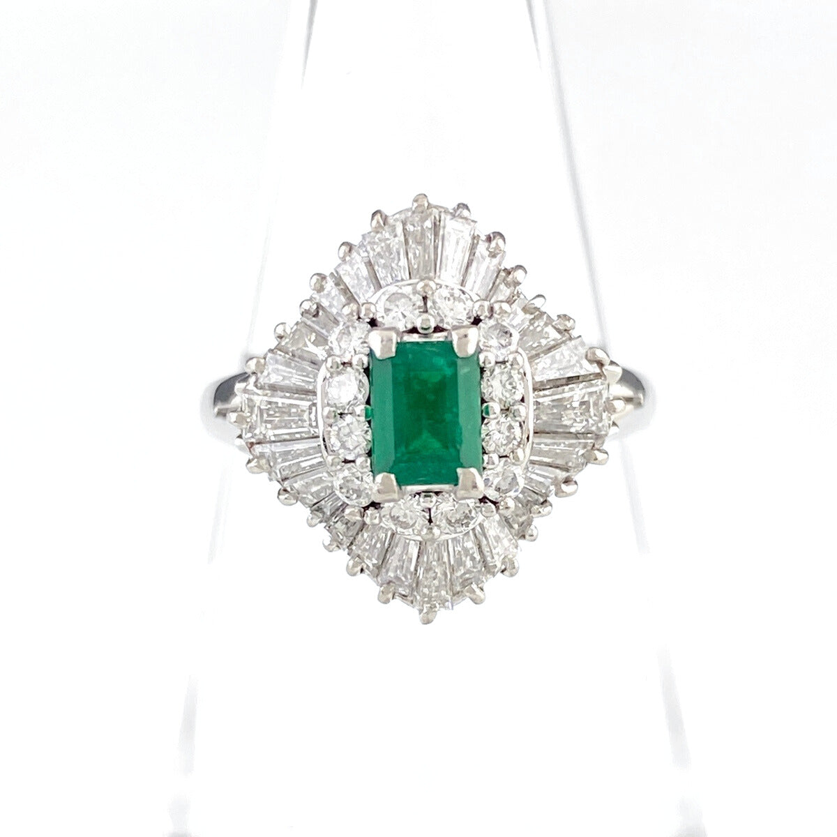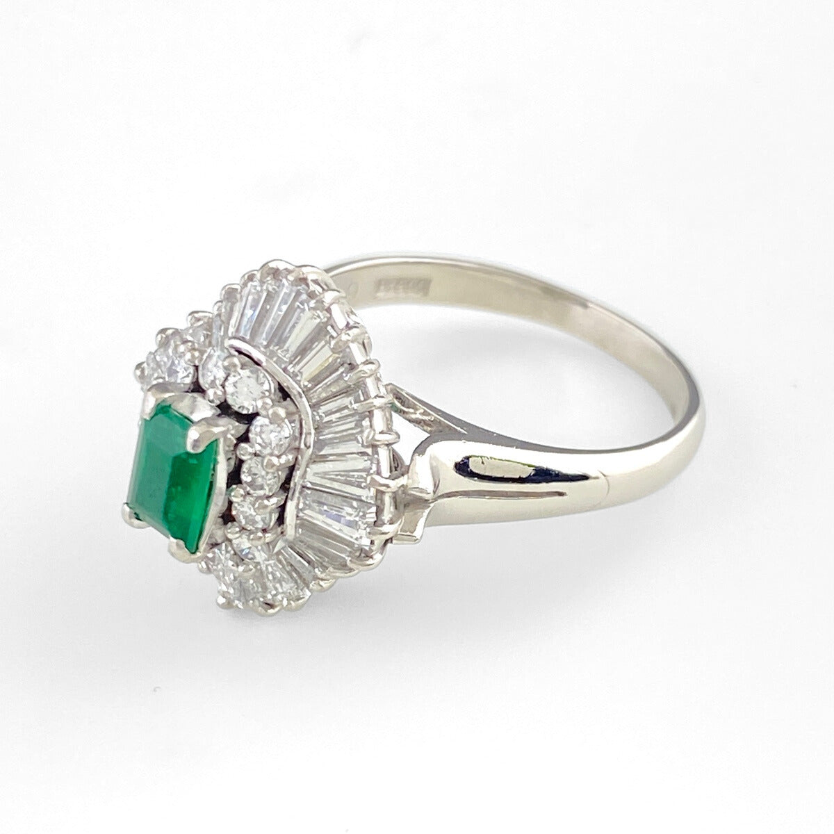 エメラルド デザインリング プラチナ 指輪 メレダイヤ リング 12.5号 Pt900 エメラルド ダイヤモンド レディース 【中古】nbjwl