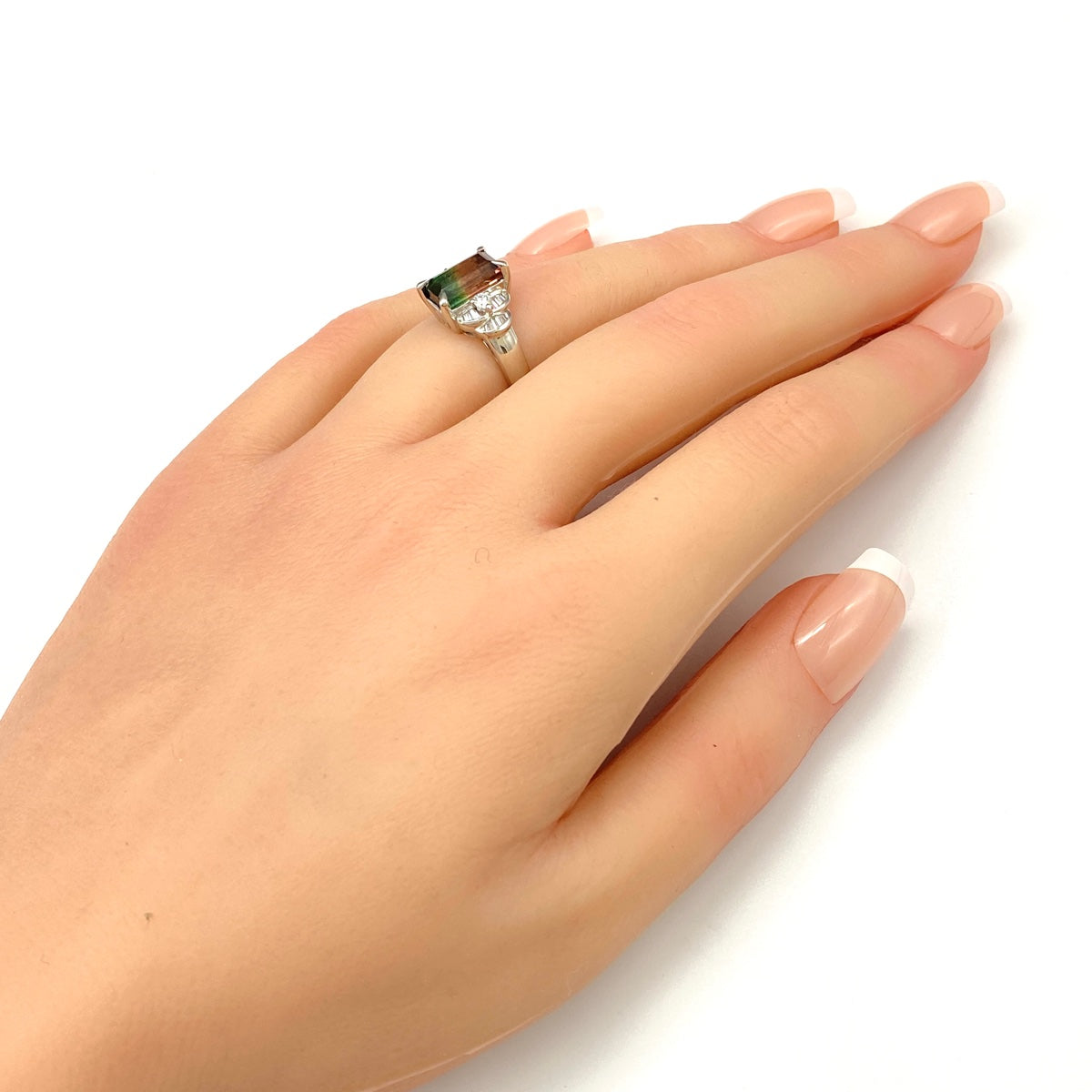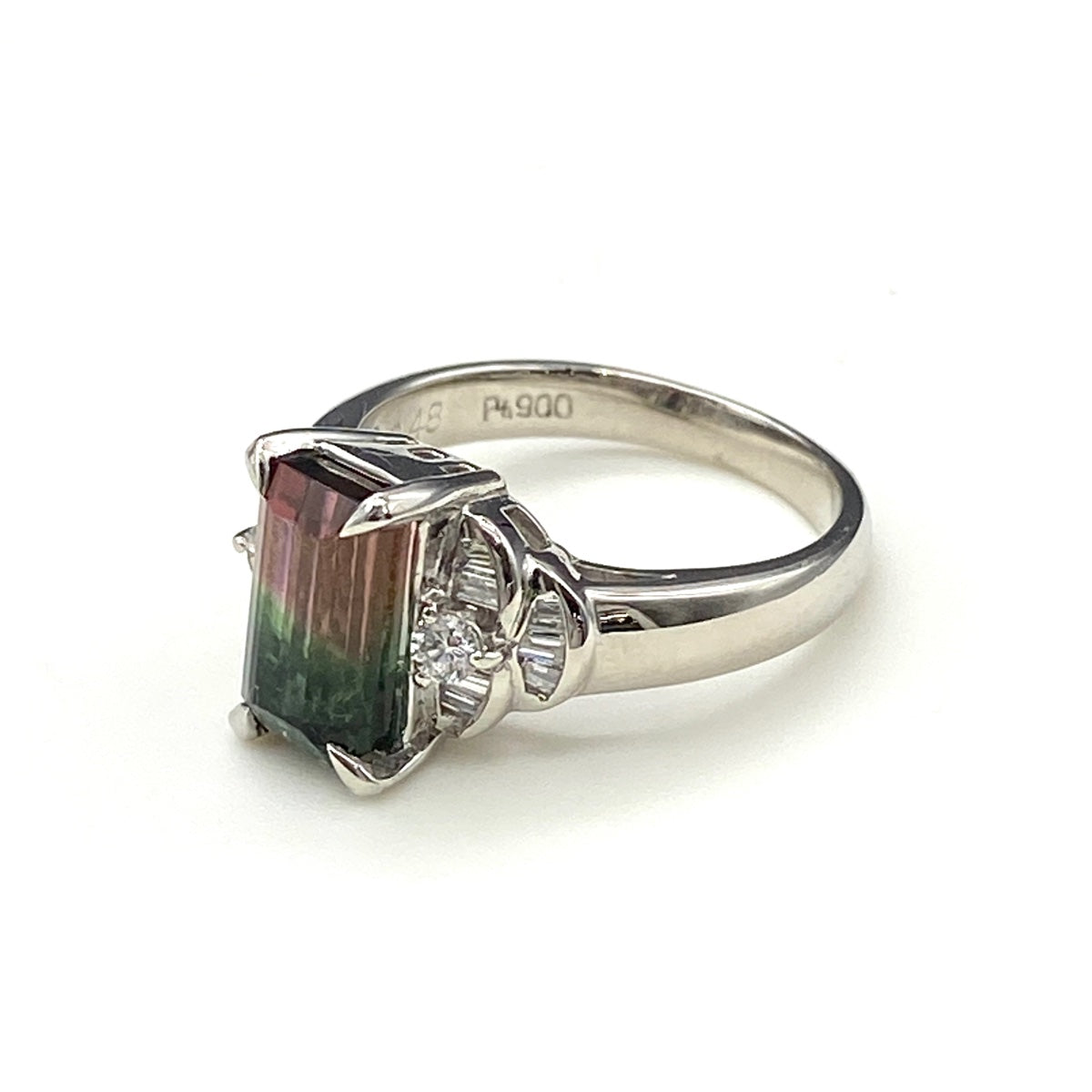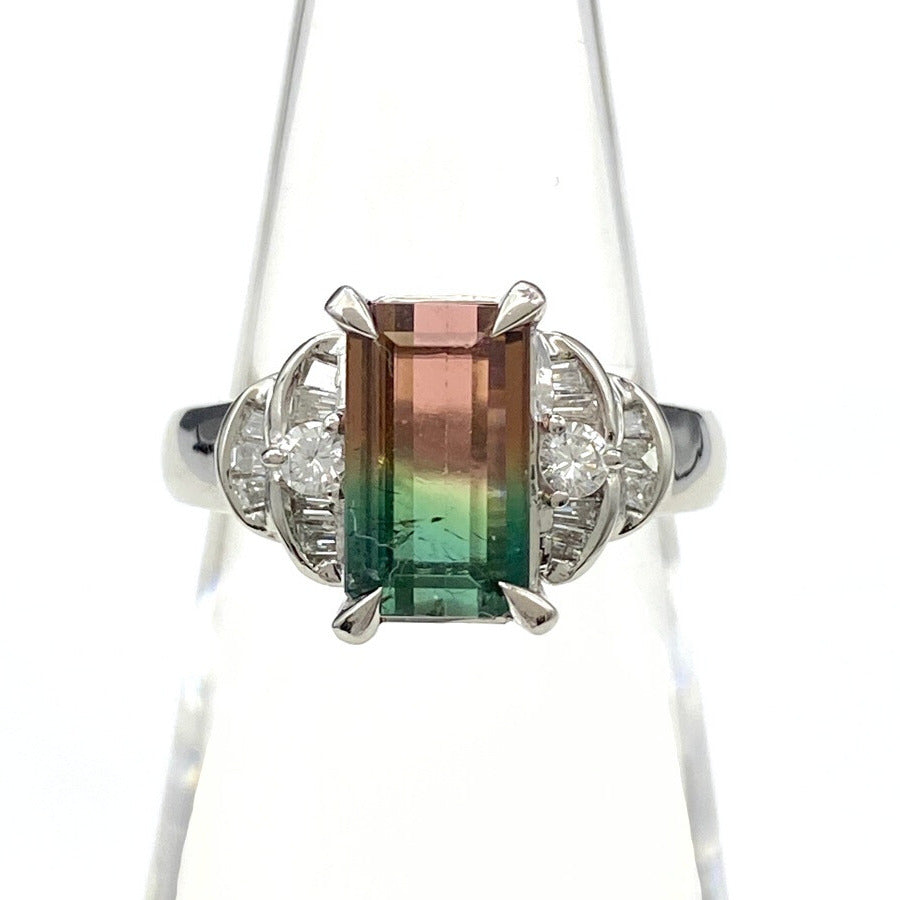 トルマリン デザインリング プラチナ 指輪 メレダイヤ リング 10.5号 Pt900 トルマリン ダイヤモンド レディース 【中古】nbjwl