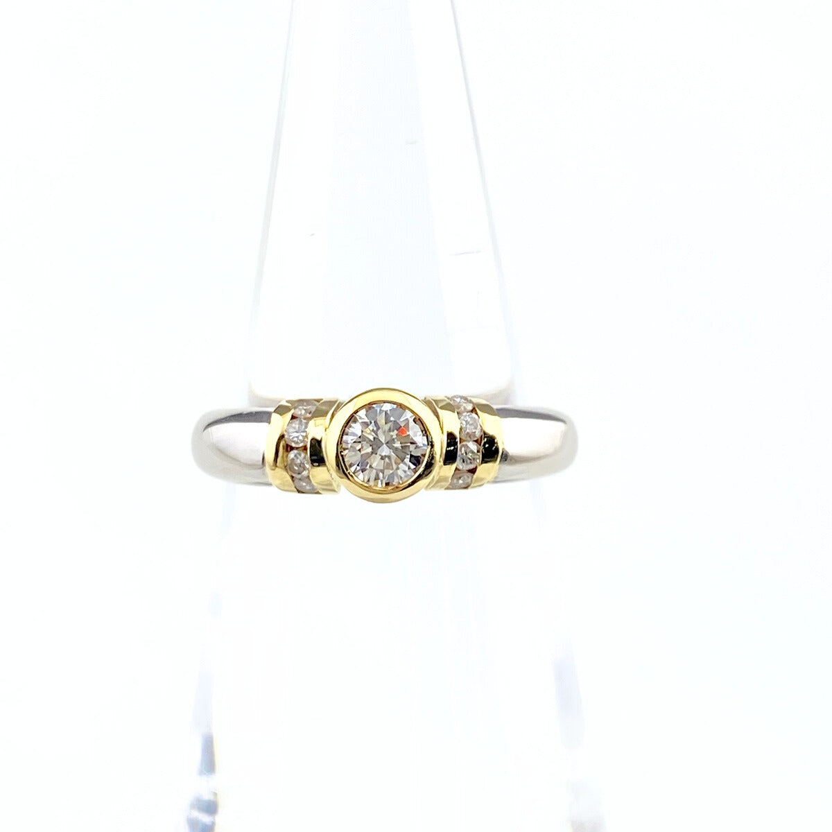 ダイヤモンド デザインリング プラチナ YG イエローゴールド 指輪 リング 8.5号 Pt900 K18 ダイヤモンド レディース 【中古】nbjwl