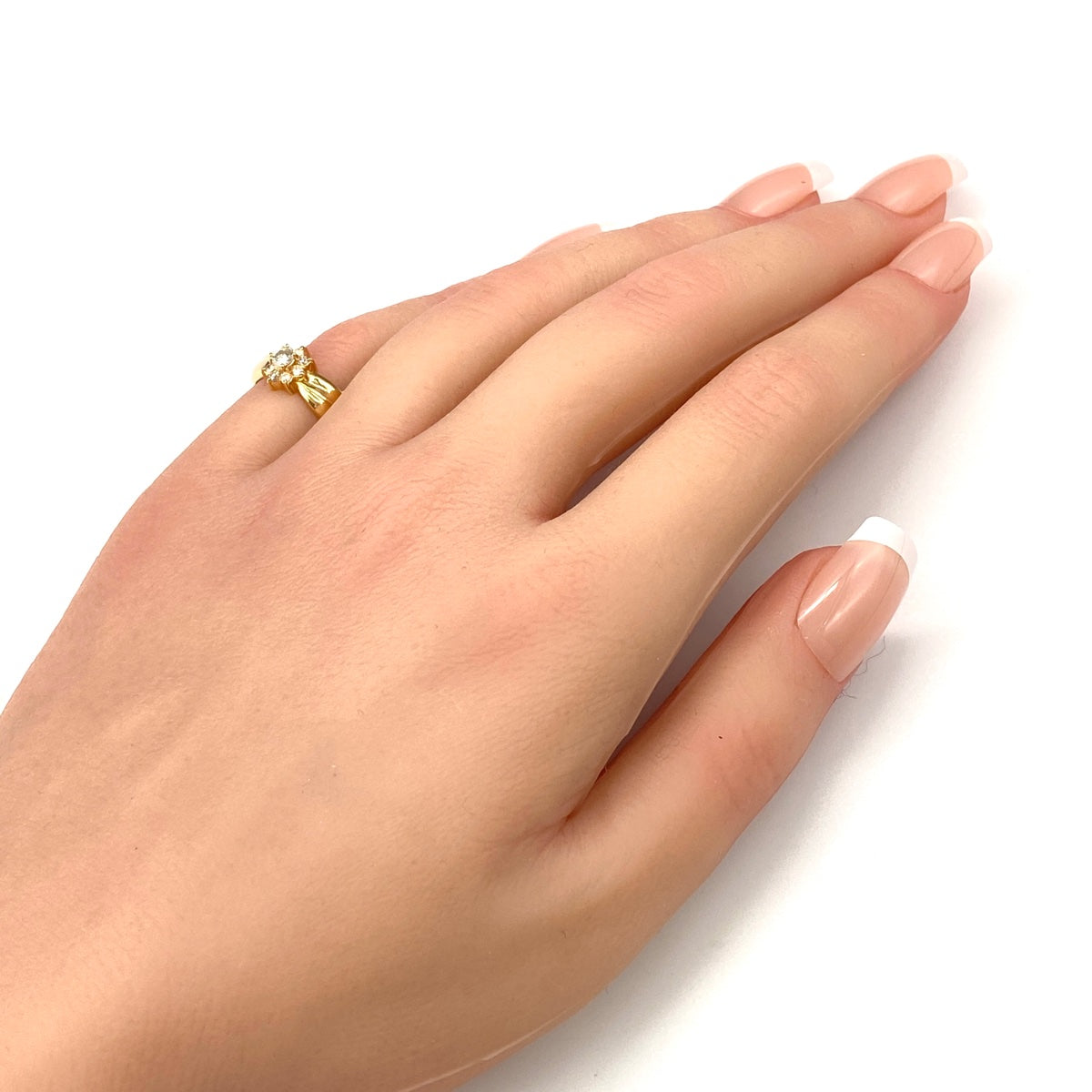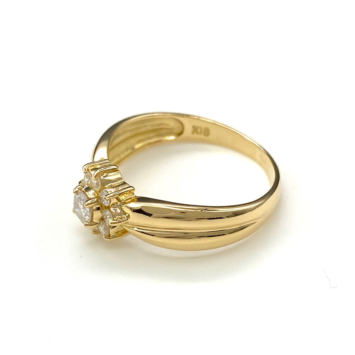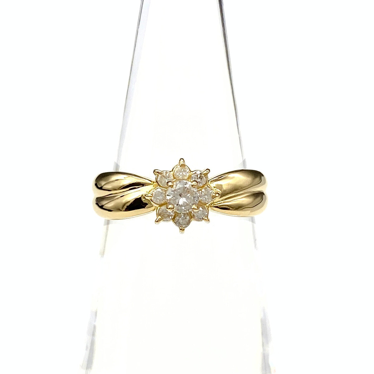 フラワーモチーフ デザインリング YG イエローゴールド 指輪 メレダイヤ 花 リング 8号 K18 ダイヤモンド レディース 【中古】nbjwl