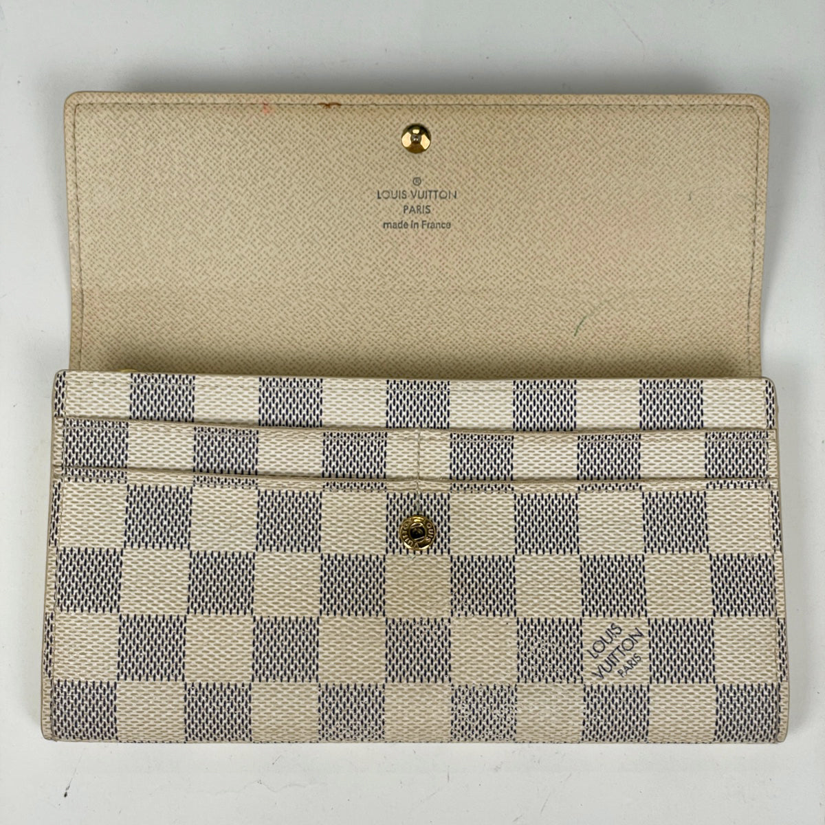コメント 《全体》型崩れ、生活臭、スレ、キズ、シワ、汚れ 《内側》ペン跡 《フチ》剥がれ 《カードポケット内側》べたつき 《ファスナーポケット》汚れ 《金具》小キズ