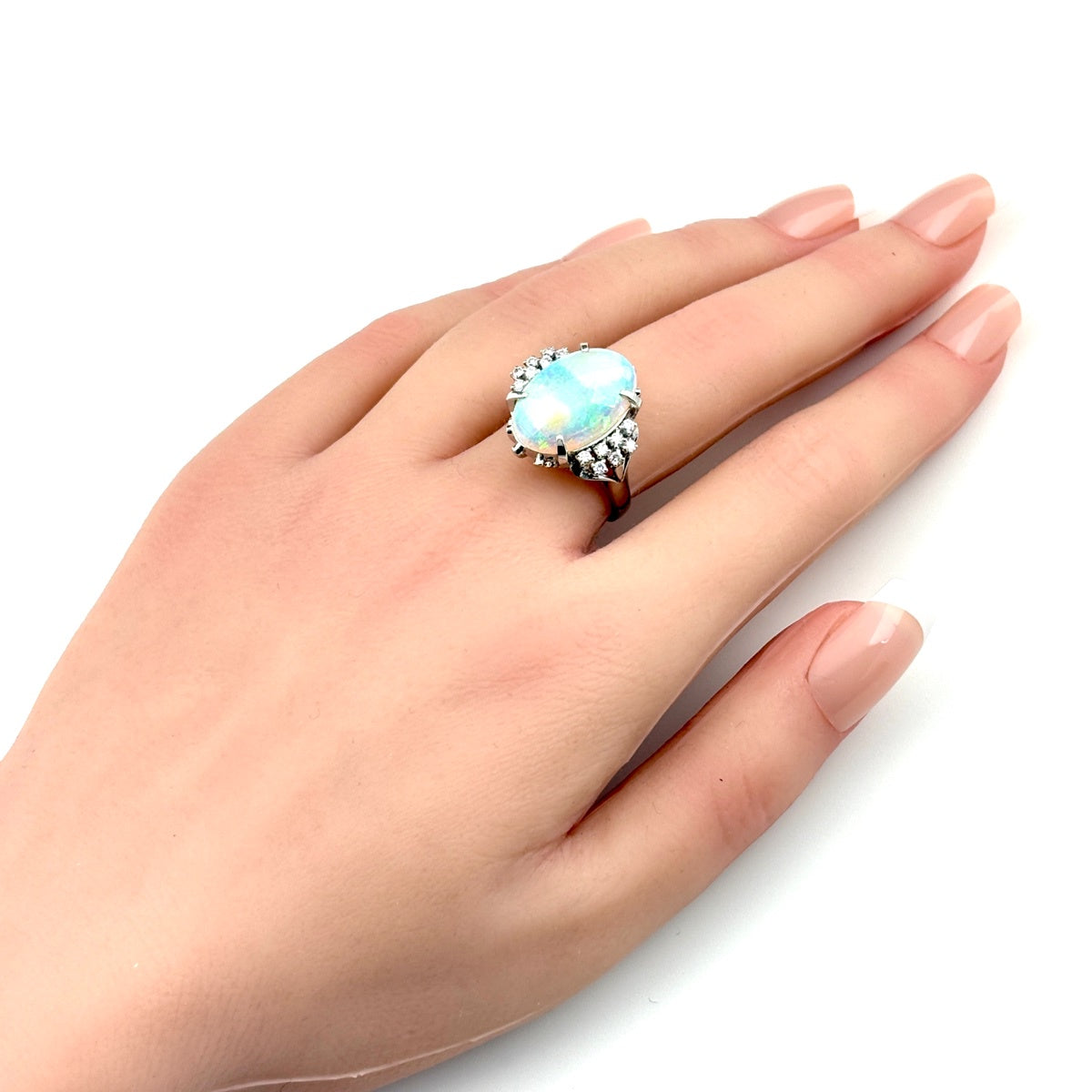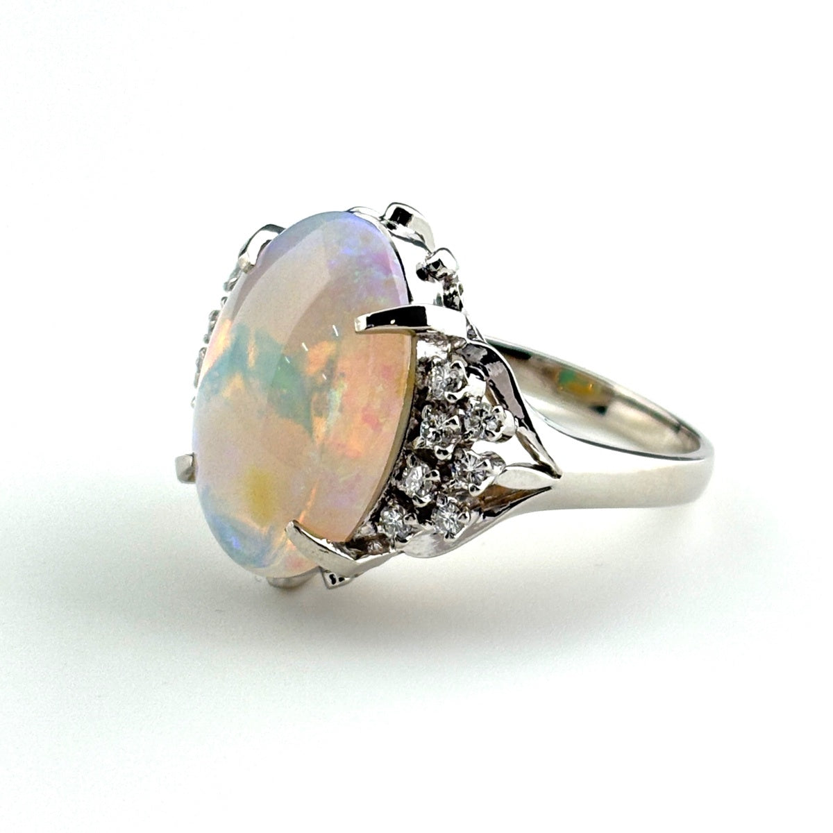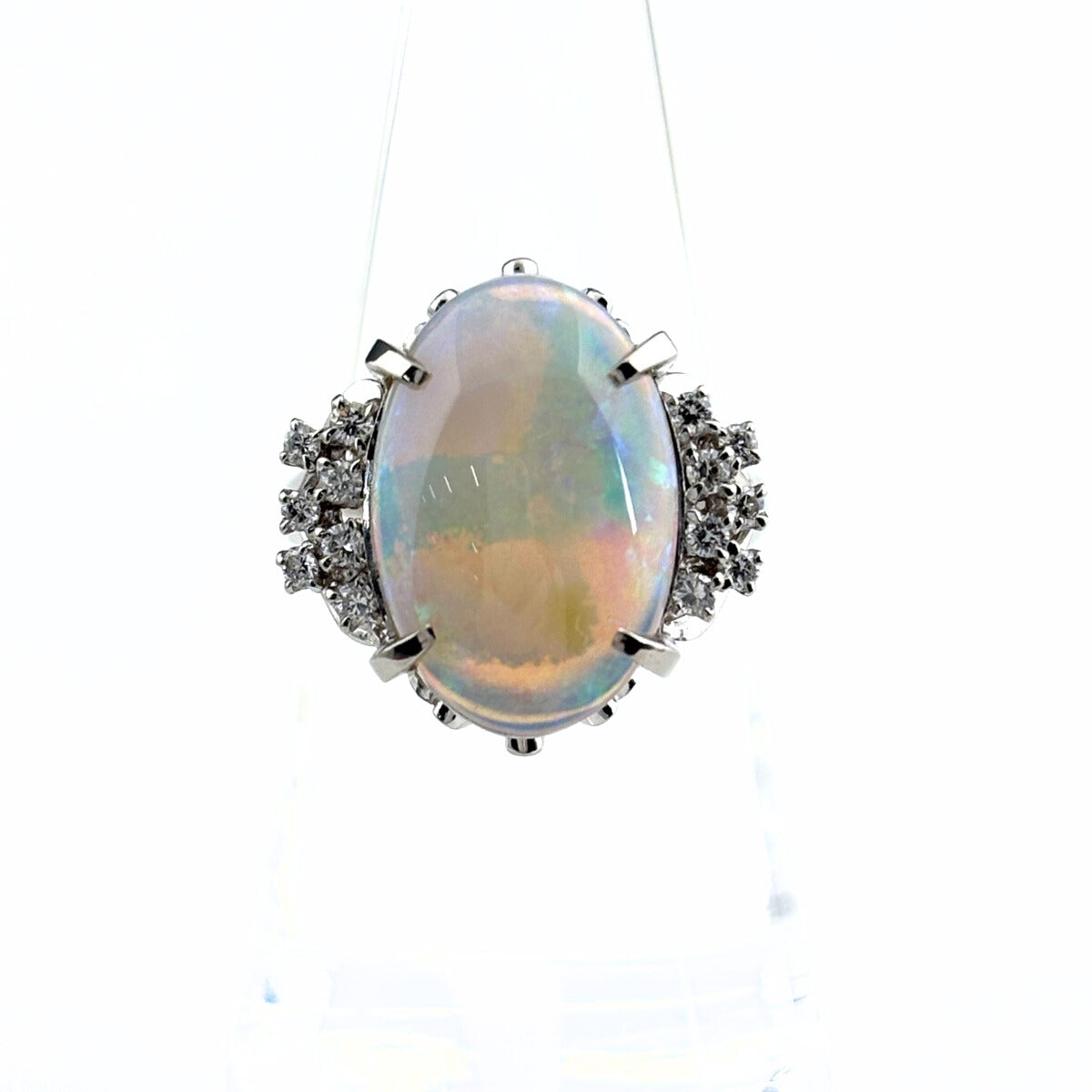 オパール デザインリング プラチナ 指輪 メレダイヤ リング 14号 Pt900 オパール ダイヤモンド レディース ノンブランドジュエリー 【中古】nbjwl