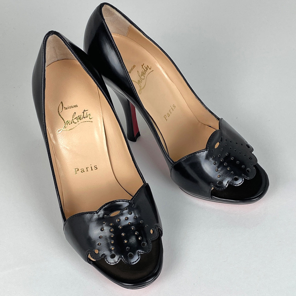 クリスチャンルブタン オープントゥパンプス ピンヒール ハイヒール 靴 パンプス レザー ブラック レディース 【中古】brapp
