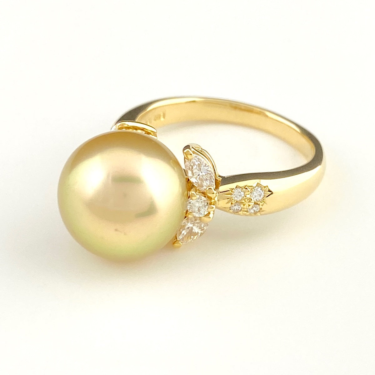 ライン YG イエローゴールド 指輪 メレダイヤ 真珠