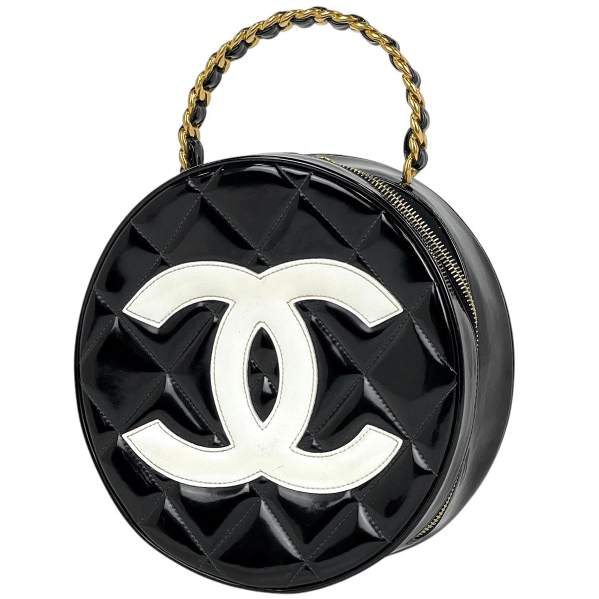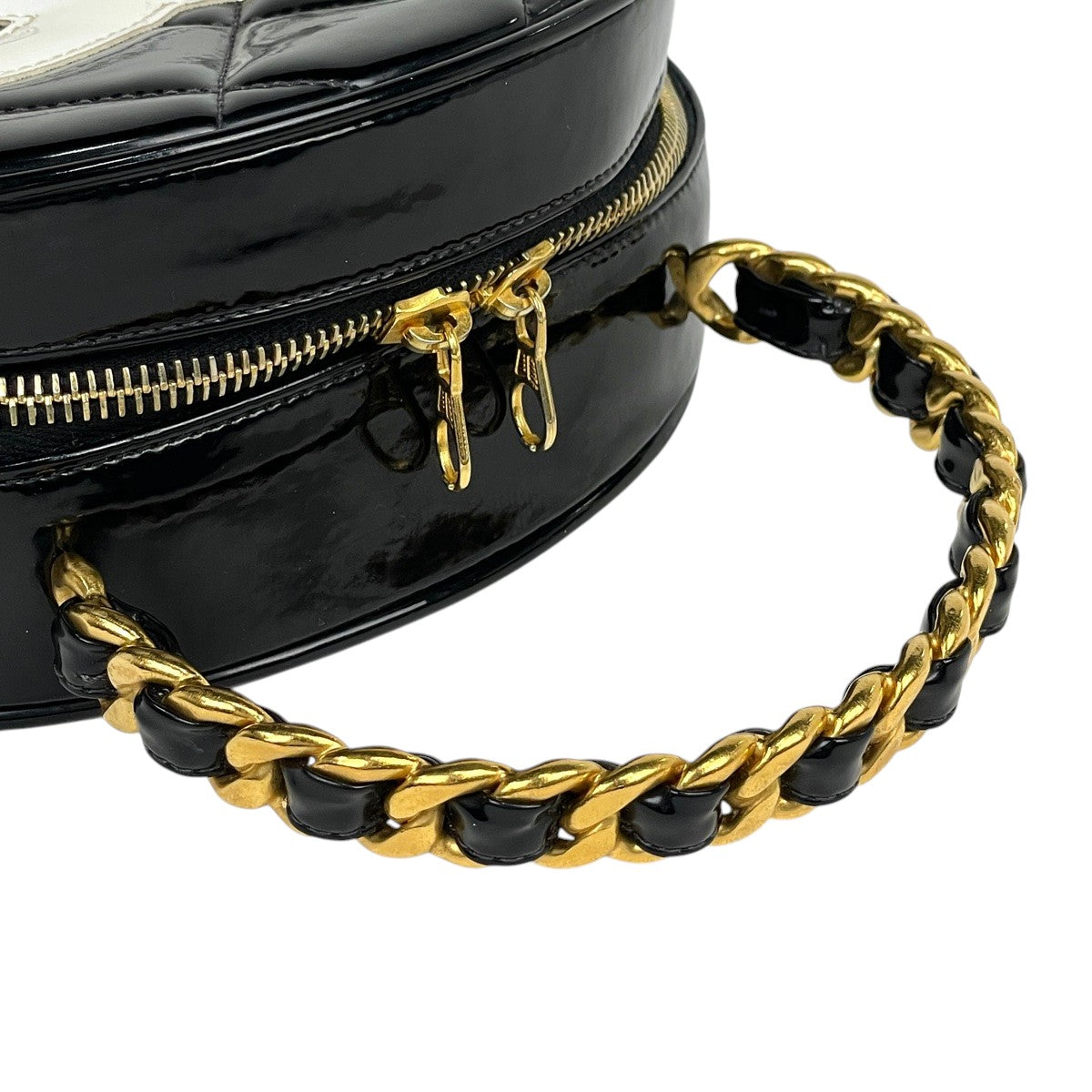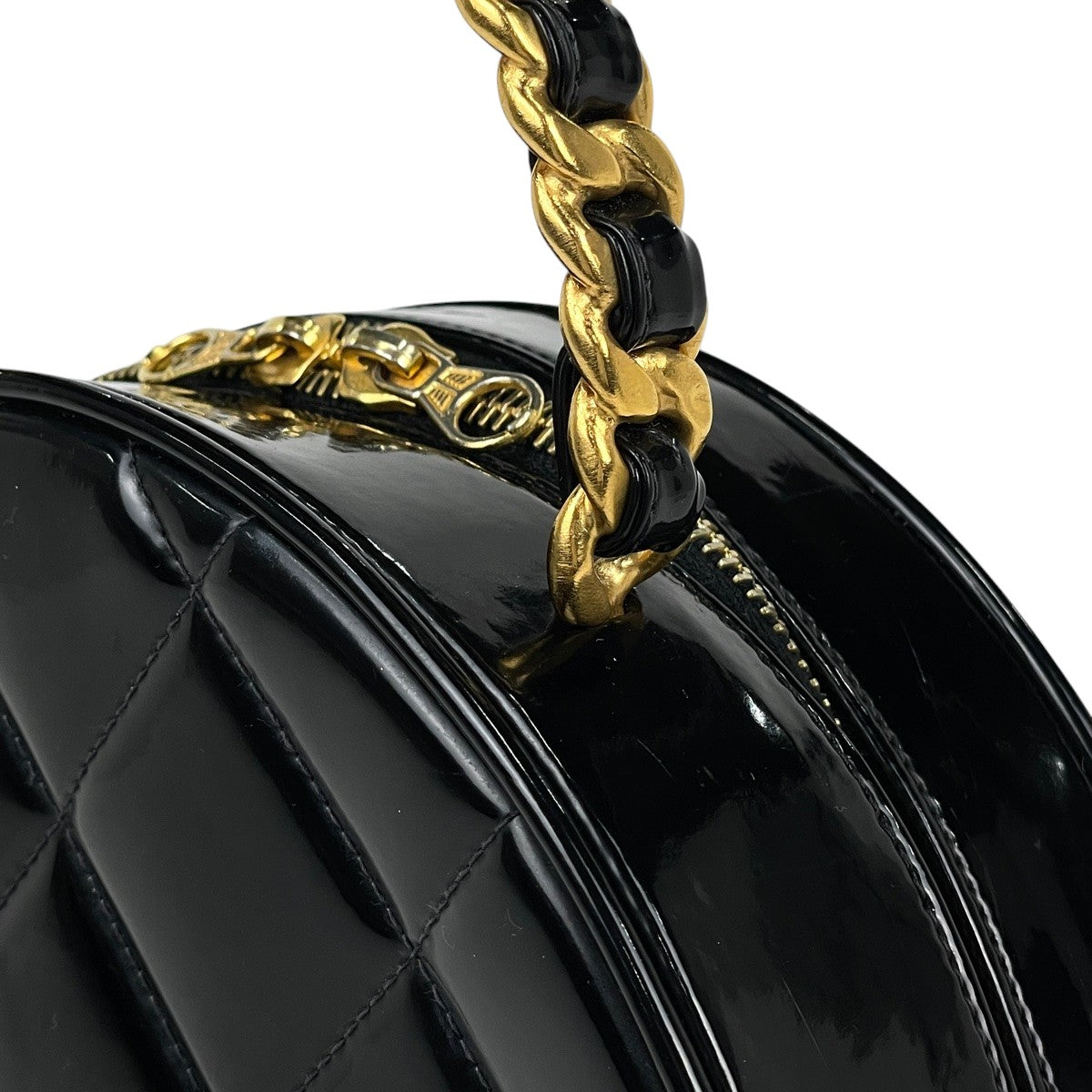 ライン ラウンド ハンドバッグ エナメル