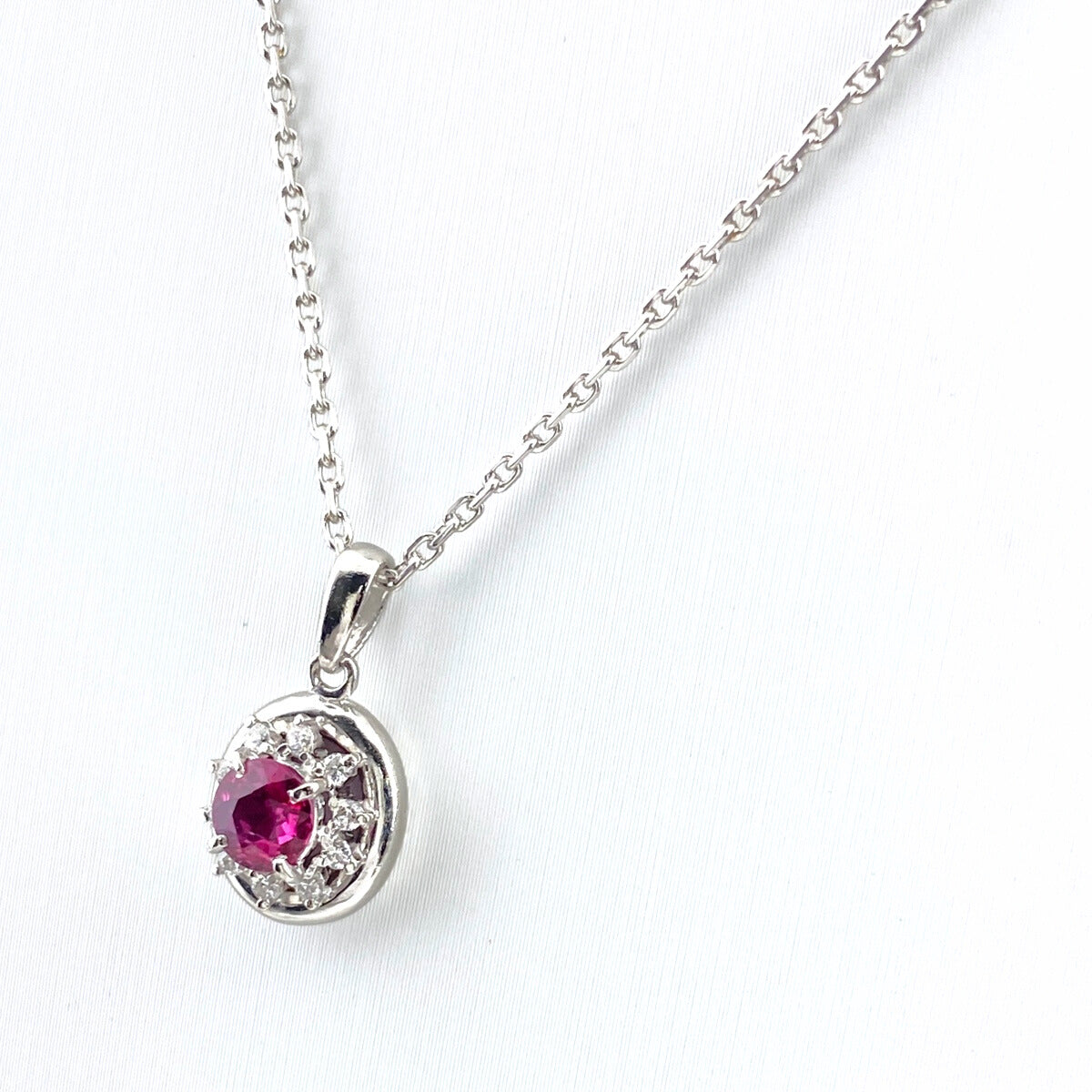 ルビー デザインネックレス プラチナ メレダイヤ ペンダント ネックレス Pt900 ルビー ダイヤモンド レディース 【中古】nbjwl