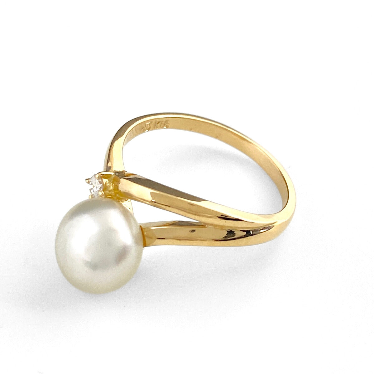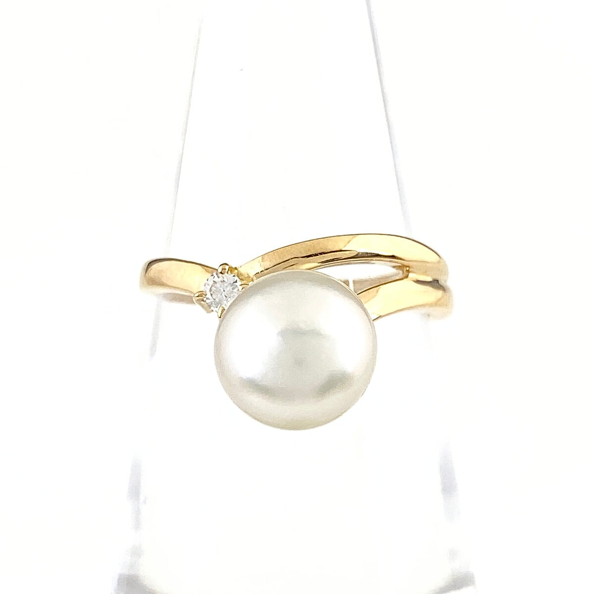 ライン YG イエローゴールド 指輪 メレダイヤ 真珠