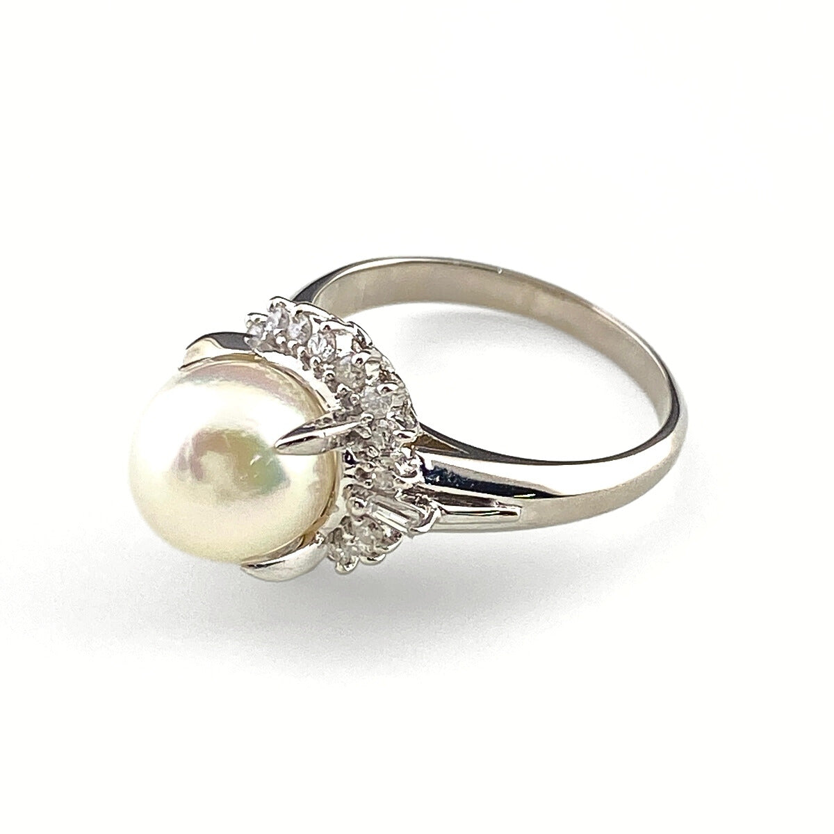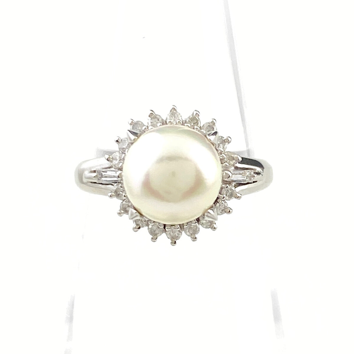 パール デザインリング プラチナ メレダイヤ 指輪 真珠 リング 12号 Pt900 パール ダイヤモンド レディース 【中古】nbjwl
