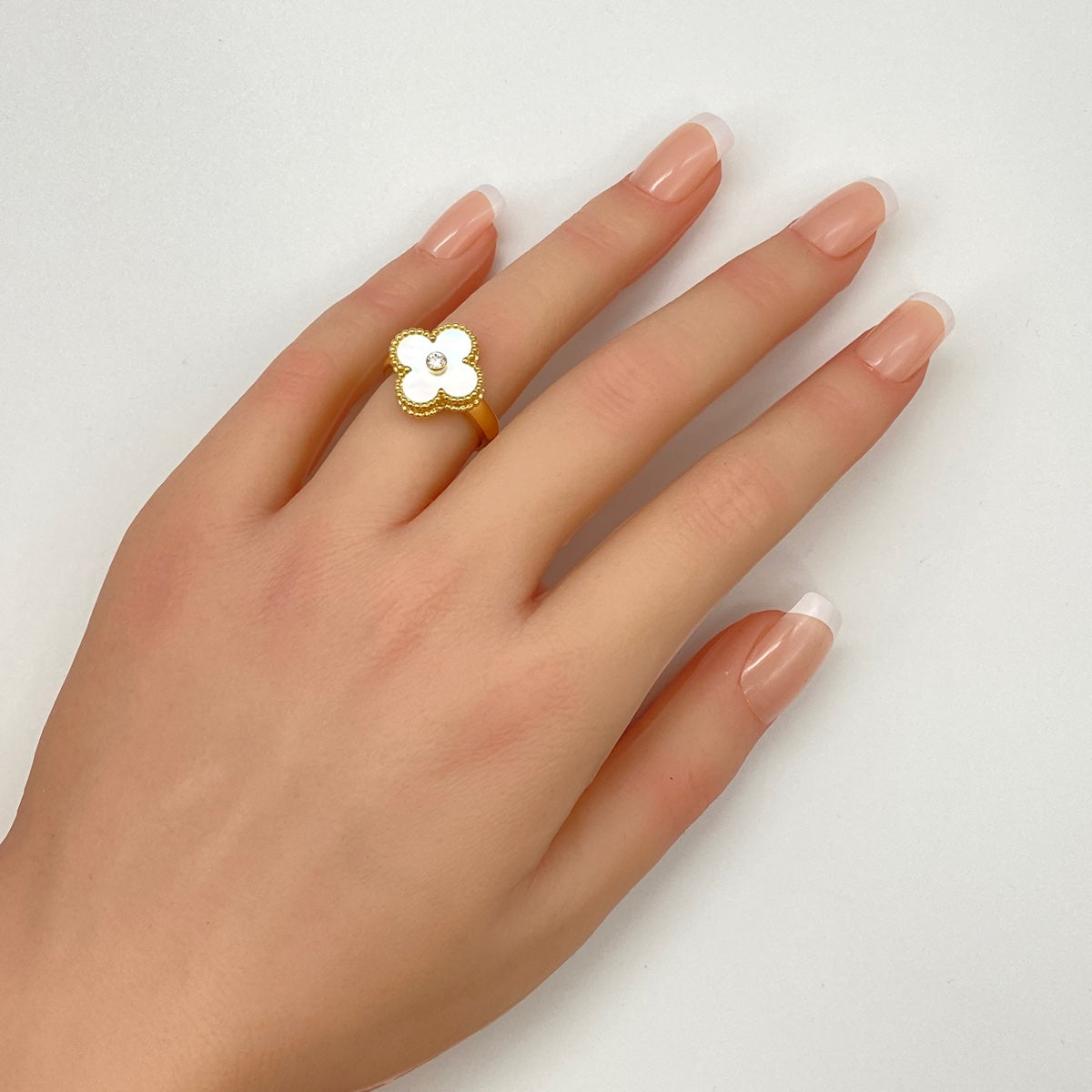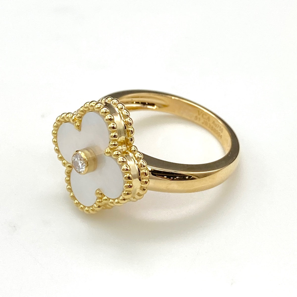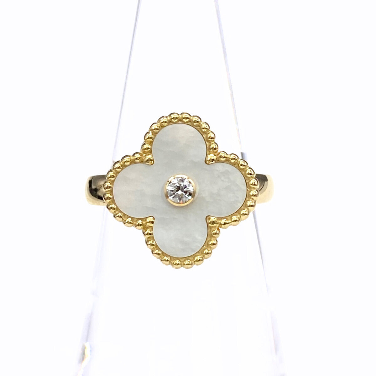 ヴァンクリーフ&アーペル ヴィンテージ アルハンブラ リング YG イエローゴールド 指輪 マザー オブ パール リング 10.5号 750 マザー オブ パール レディース 【中古】brjwl