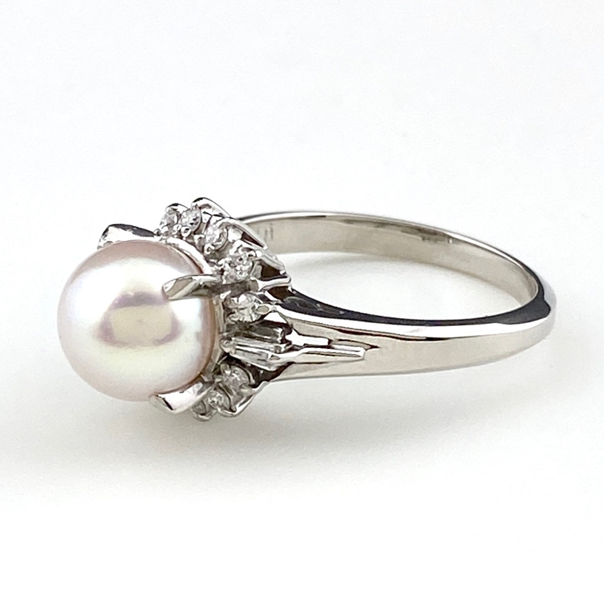 ライン プラチナ 指輪 メレダイヤ 真珠