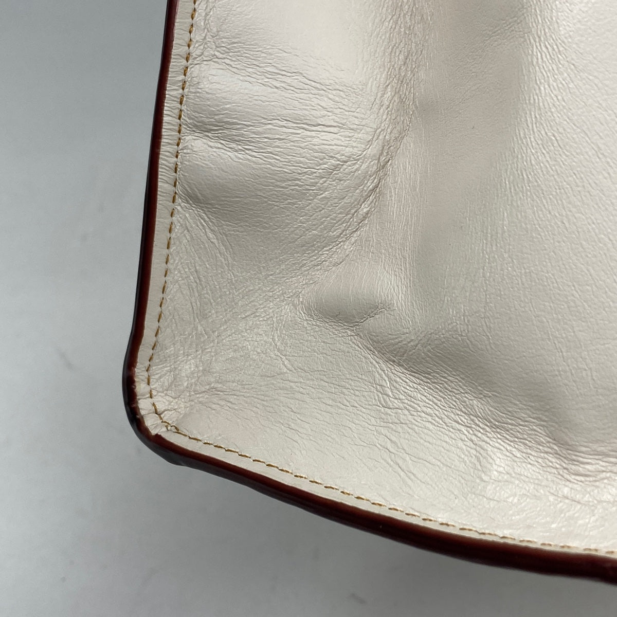 コメント 《全体》型崩れ、生活臭、スレ、キズ、シワ、汚れ 《内側》劣化による浮き、剥がれ 《ハンドル、ショルダーストラップ》へたれ、押し跡 《金具》小キズ 《フチ》剥がれ、亀裂