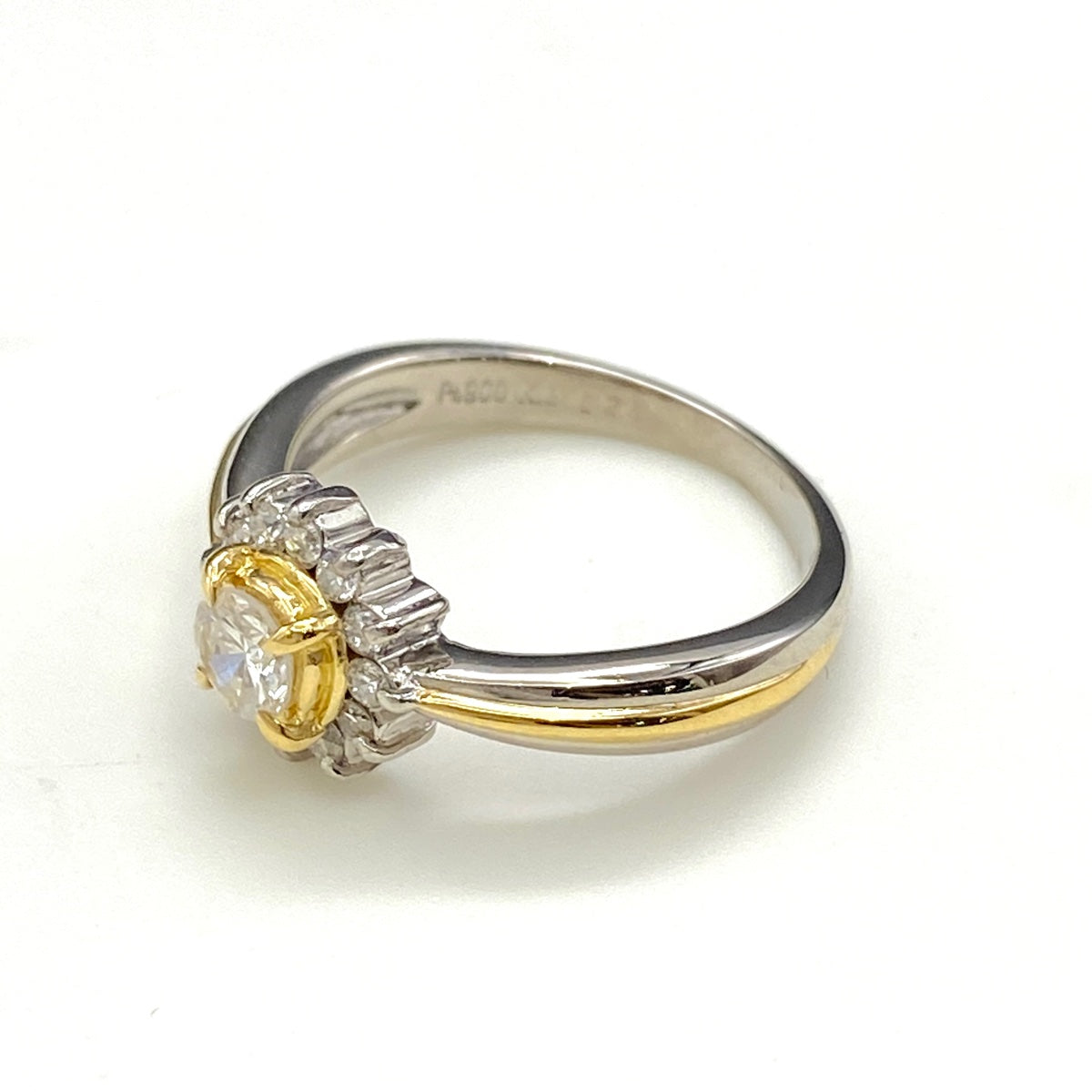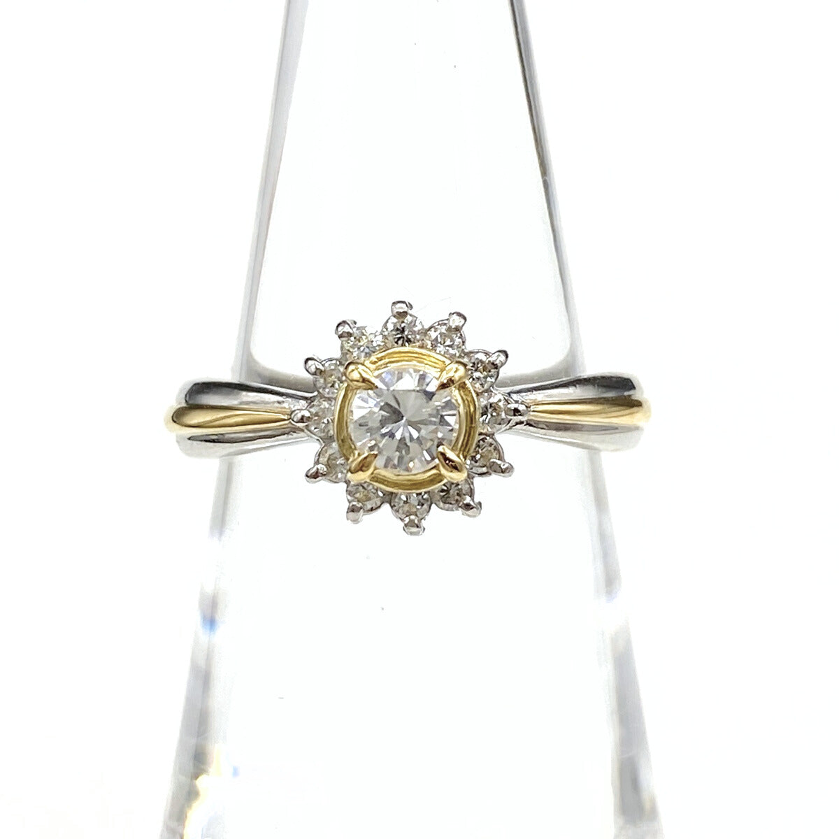 メレダイヤ デザインリング プラチナ YG イエローゴールド 指輪 リング 9.5号 Pt900 K18 ダイヤモンド レディース 【中古】nbjwl