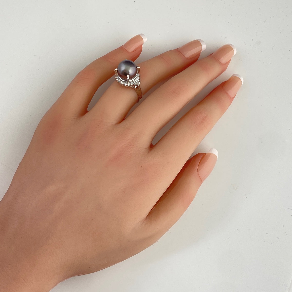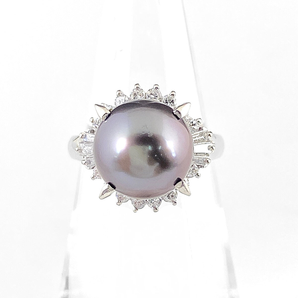 パール デザインリング プラチナ 指輪 メレダイヤ 真珠 リング 11号 Pt900 パール ダイヤモンド レディース 【中古】nbjwl