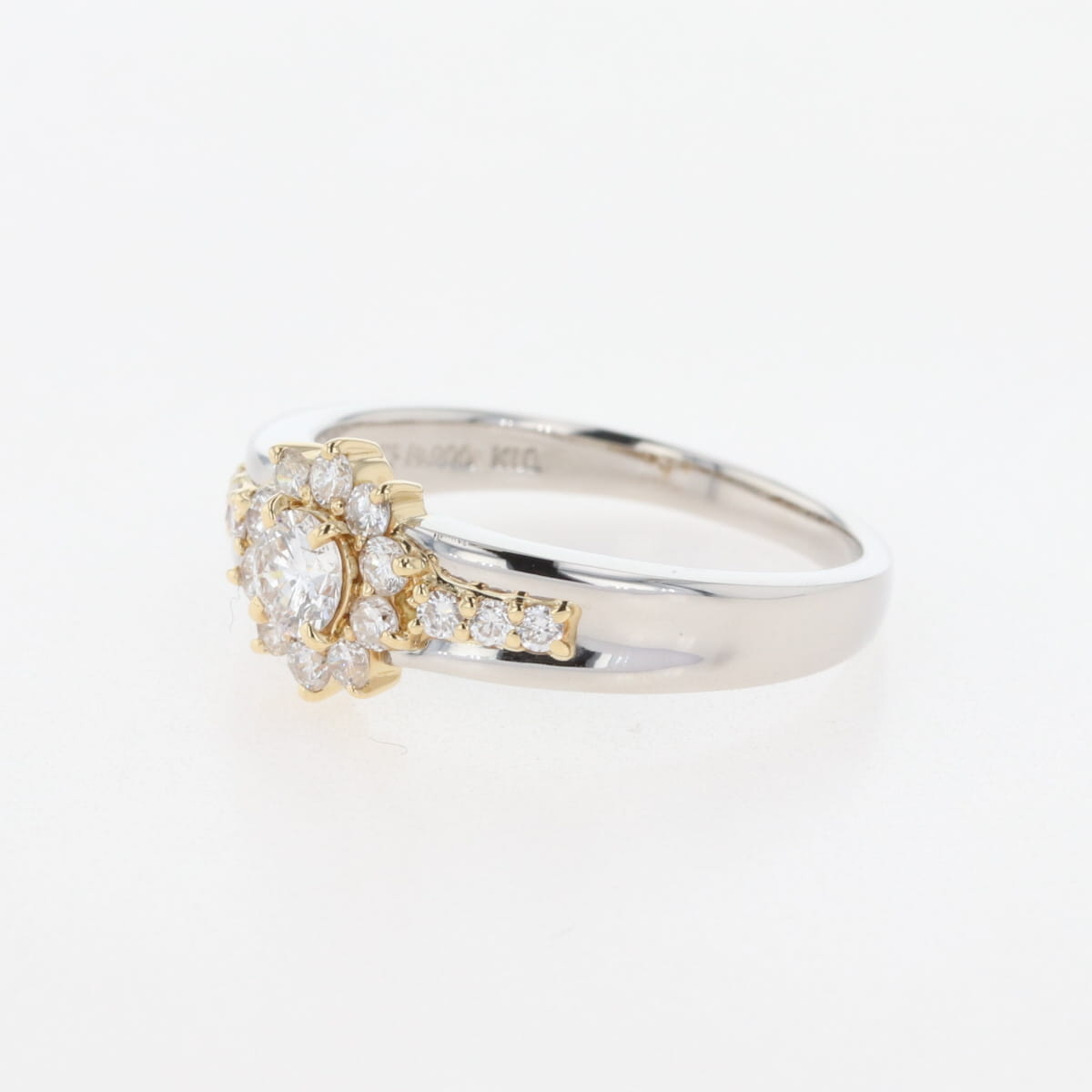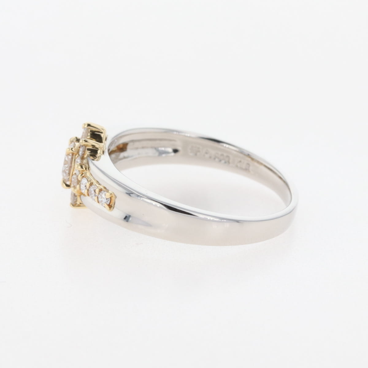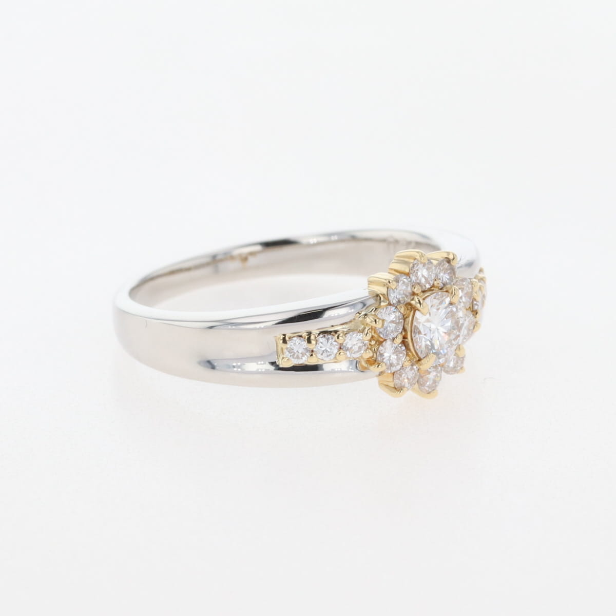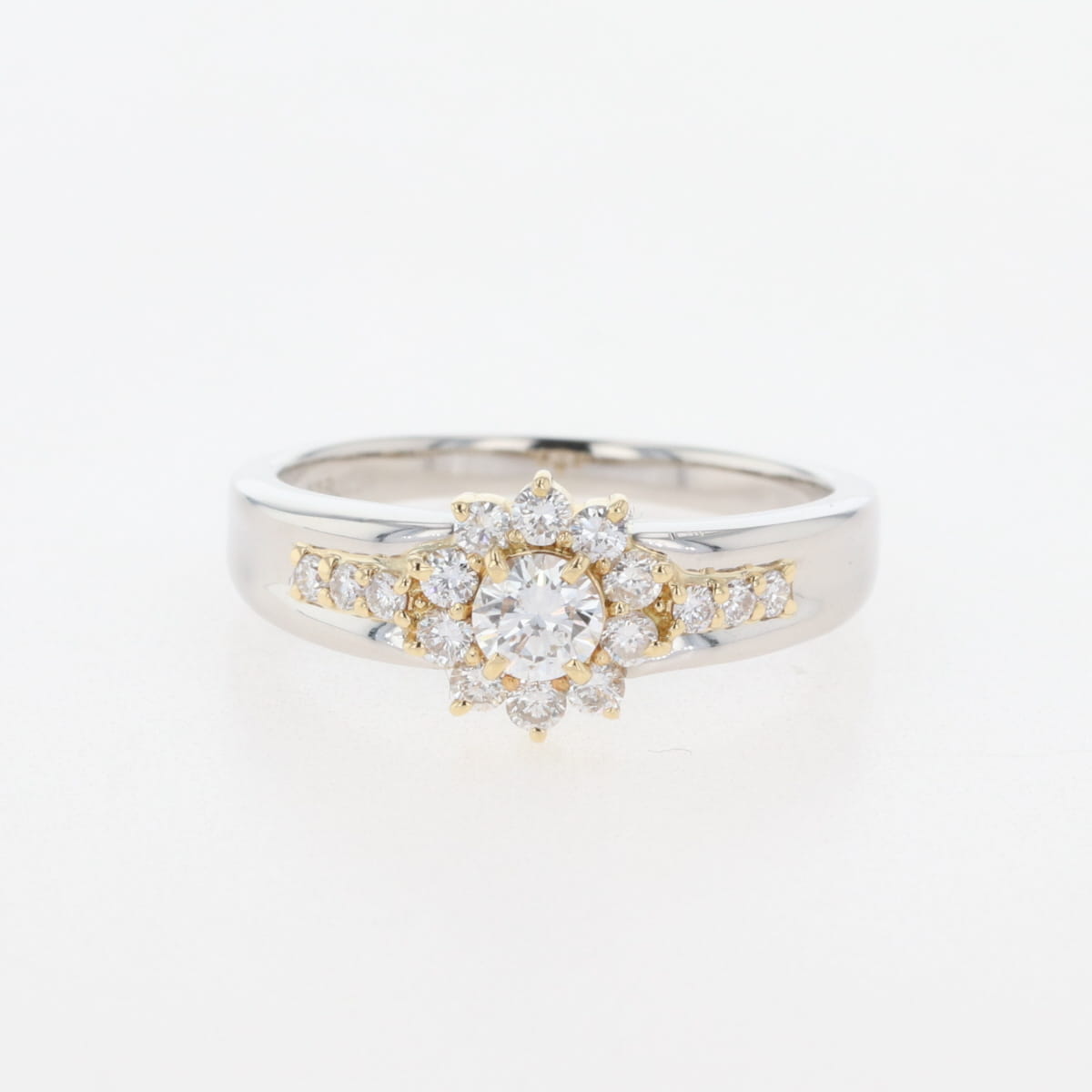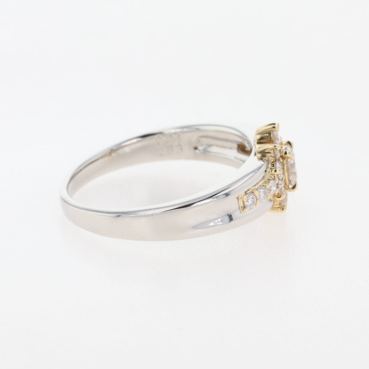 メレダイヤ デザインリング プラチナ YG イエローゴールド 指輪 リング 15号 Pt900 K18 ダイヤモンド レディース 【中古】nbjwl