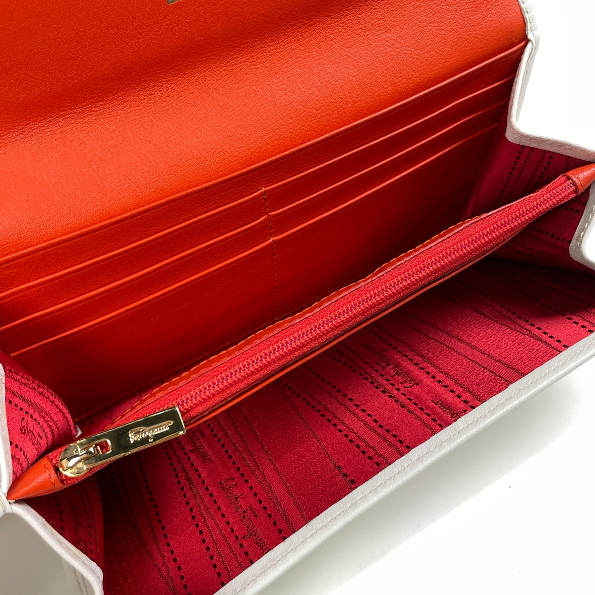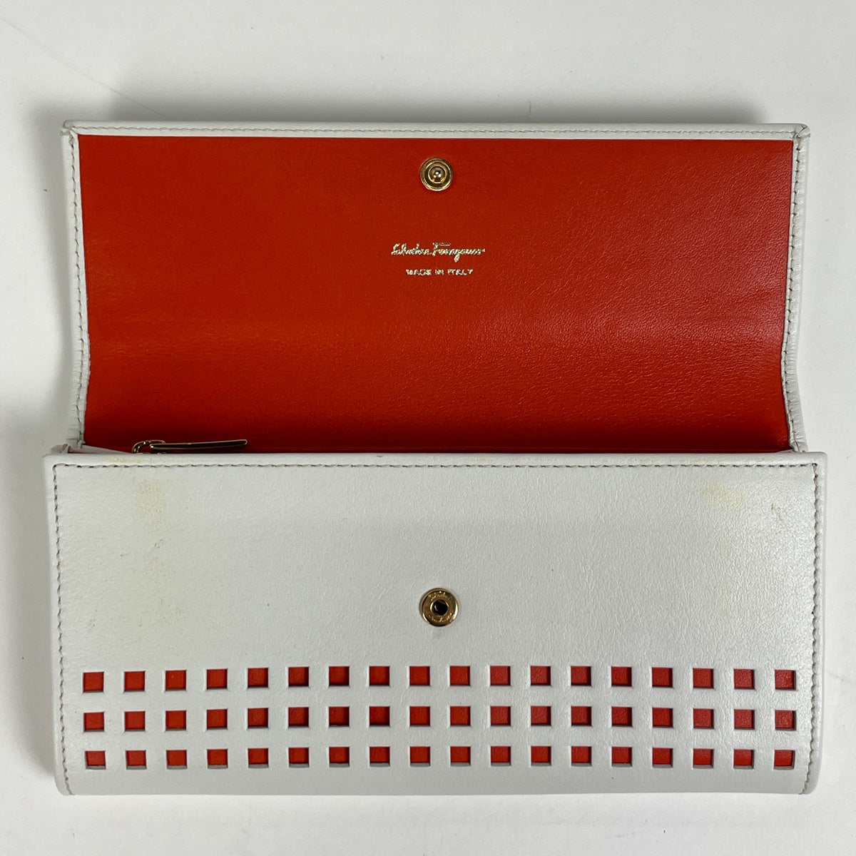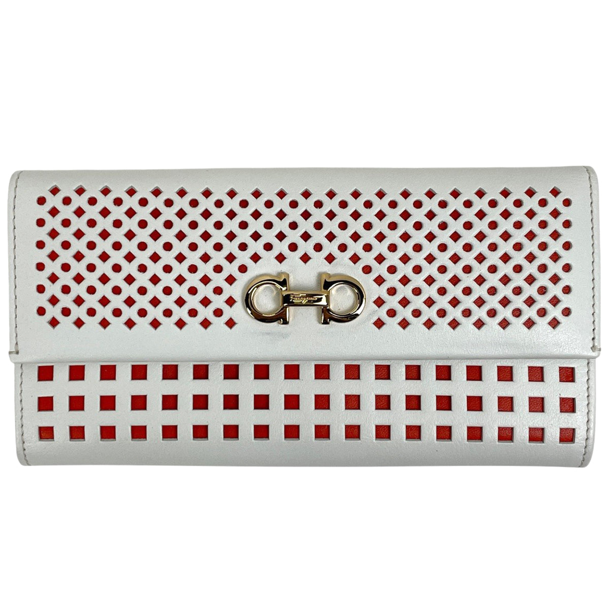 サルヴァトーレフェラガモ ガンチーニ 二つ折り長財布 ロゴ パンチング 長財布 レザー ホワイト オレンジ 8727 レディース 【中古】brbag