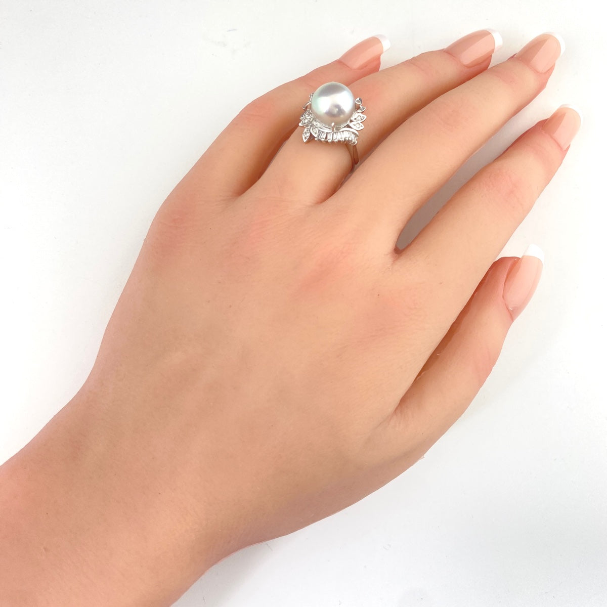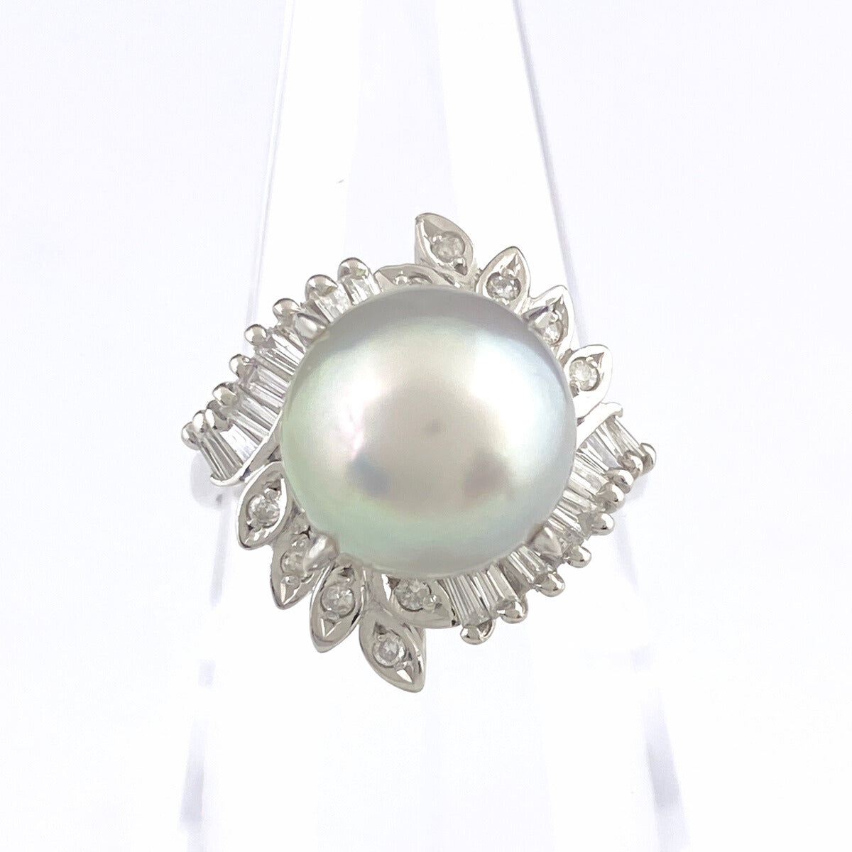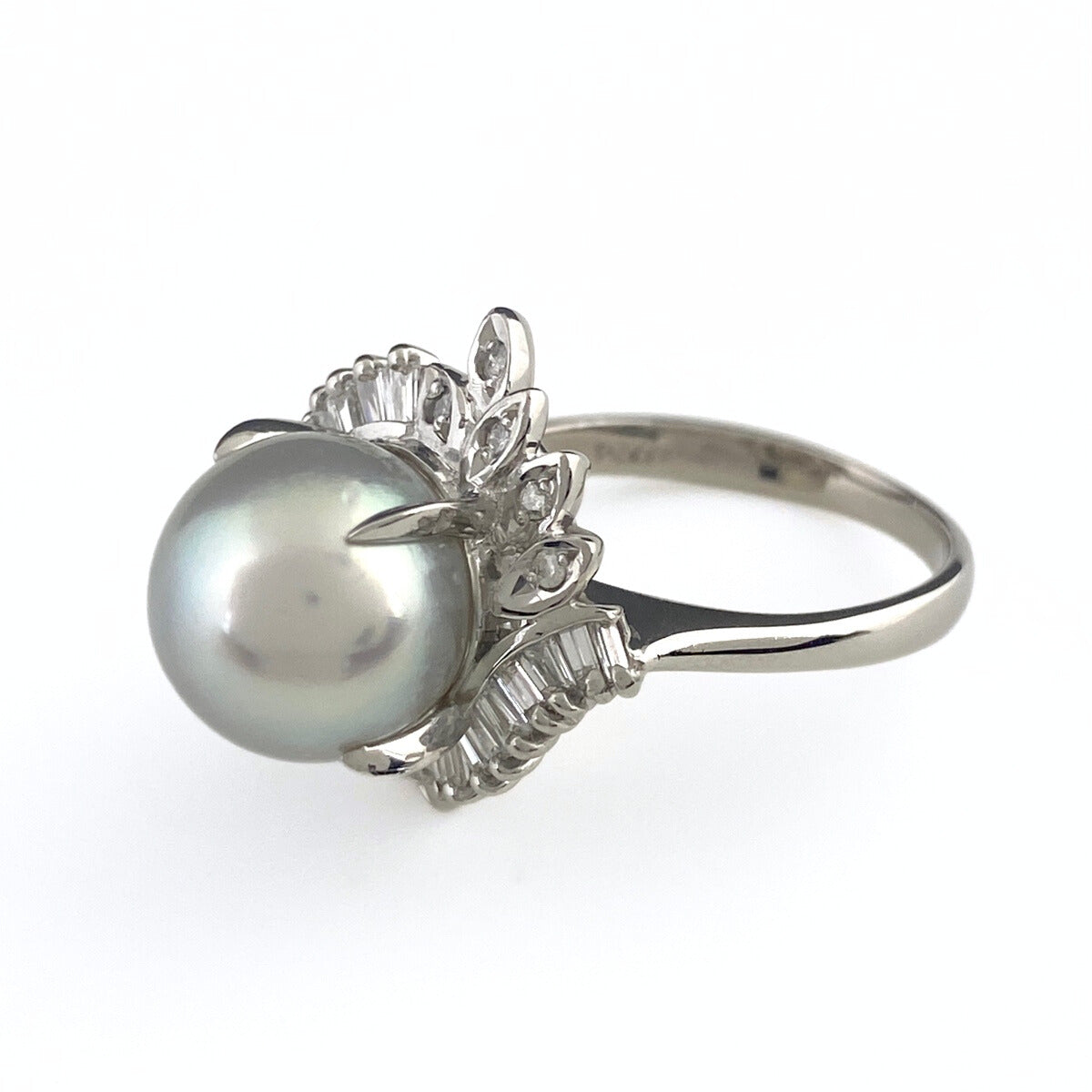 パール デザインリング プラチナ 指輪 メレダイヤ 真珠 リング 11号 Pt900 パール ダイヤモンド レディース 【中古】nbjwl