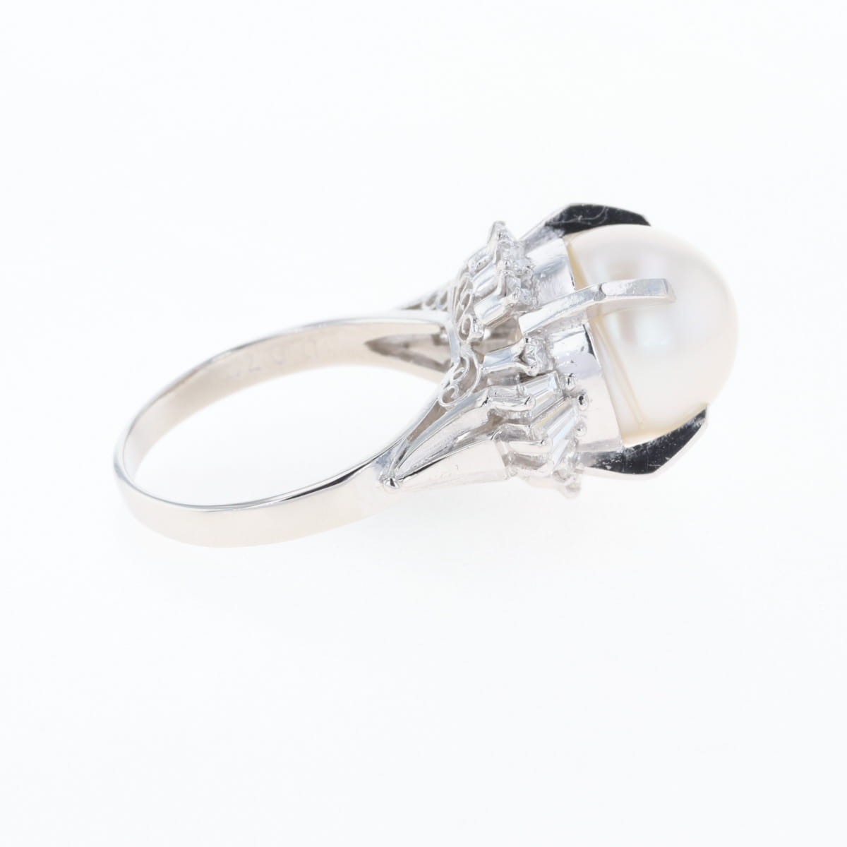 ライン プラチナ 指輪 真珠
