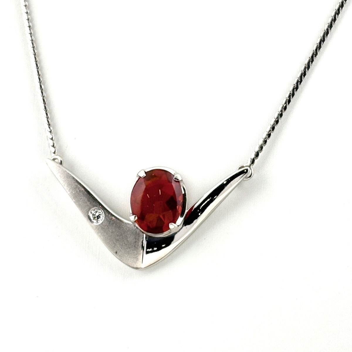 ファイアオパール デザインネックレス プラチナ ペンダント メレダイヤ ネックレス Pt900 Pt850 ファイアオパール レディース ノンブランドジュエリー 【中古】nbjwl