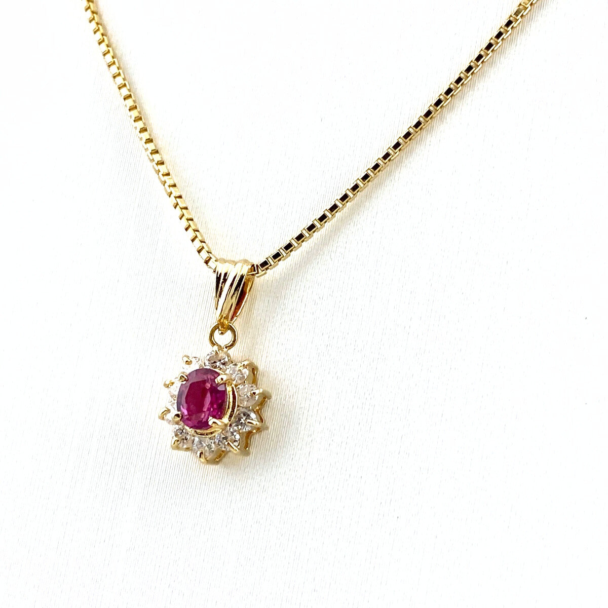 ルビー デザインネックレス YG イエローゴールド ペンダント メレダイヤ ネックレス K18 750 ルビー レディース 【中古】nbjwl