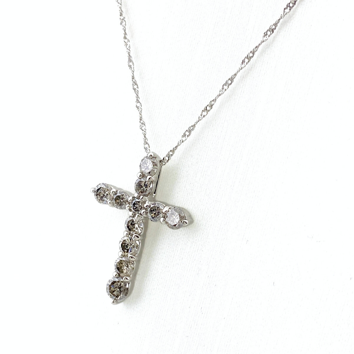 クロスモチーフ デザインネックレス プラチナ ペンダント メレダイヤ ネックレス Pt900 Pt850 ダイヤモンド レディース 【中古】nbjwl