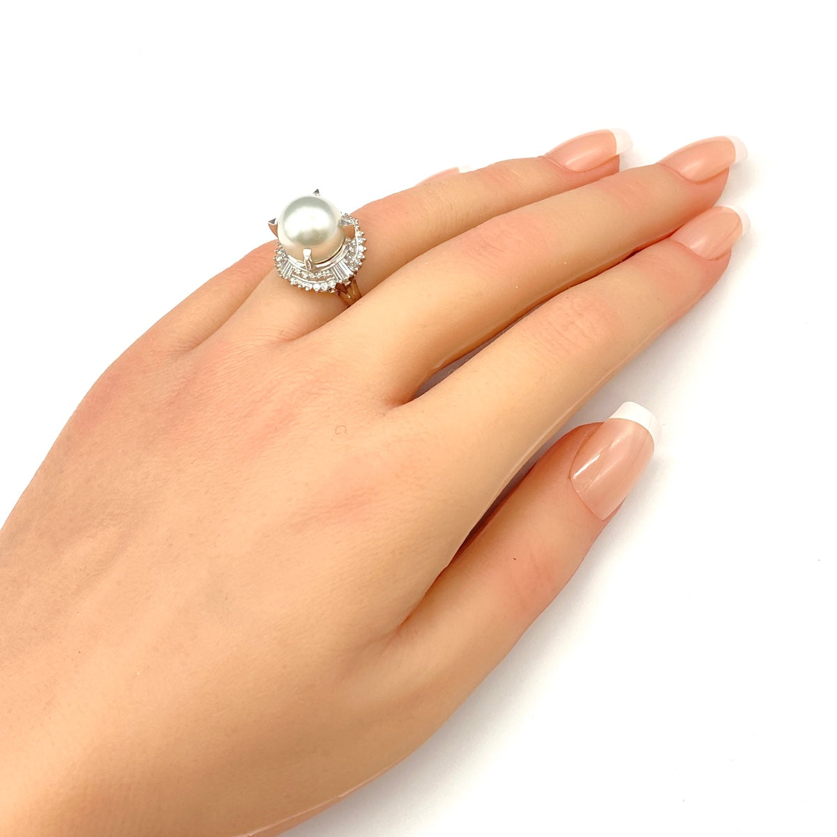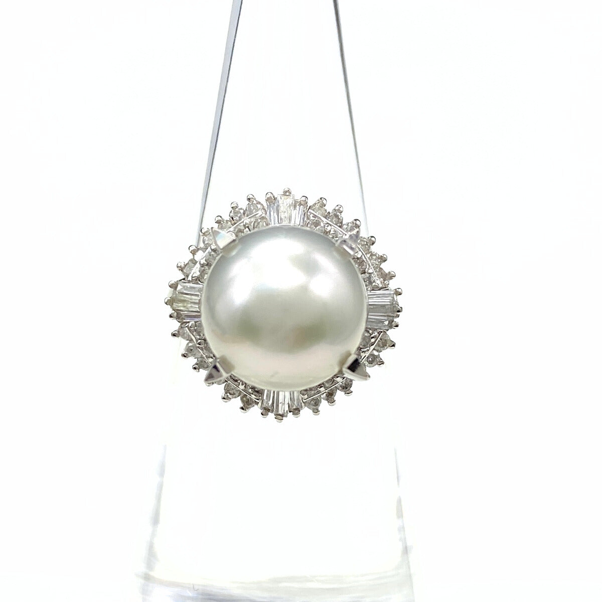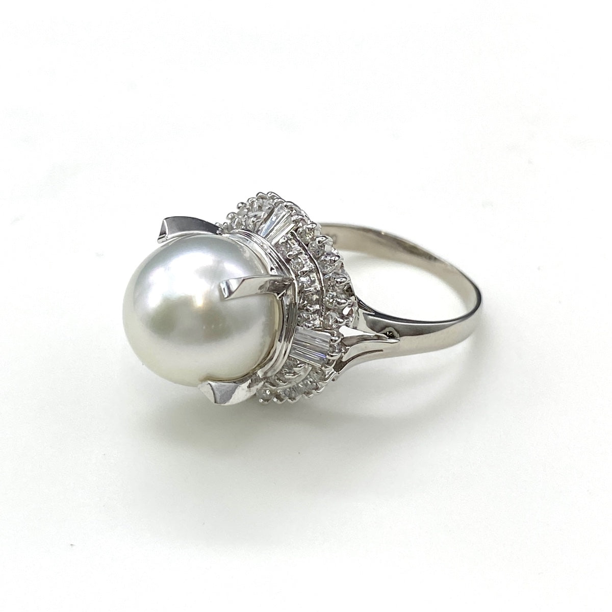 パール デザインリング プラチナ 指輪 メレダイヤ 真珠 リング 11号 Pt900 パール ダイヤモンド レディース 【中古】nbjwl
