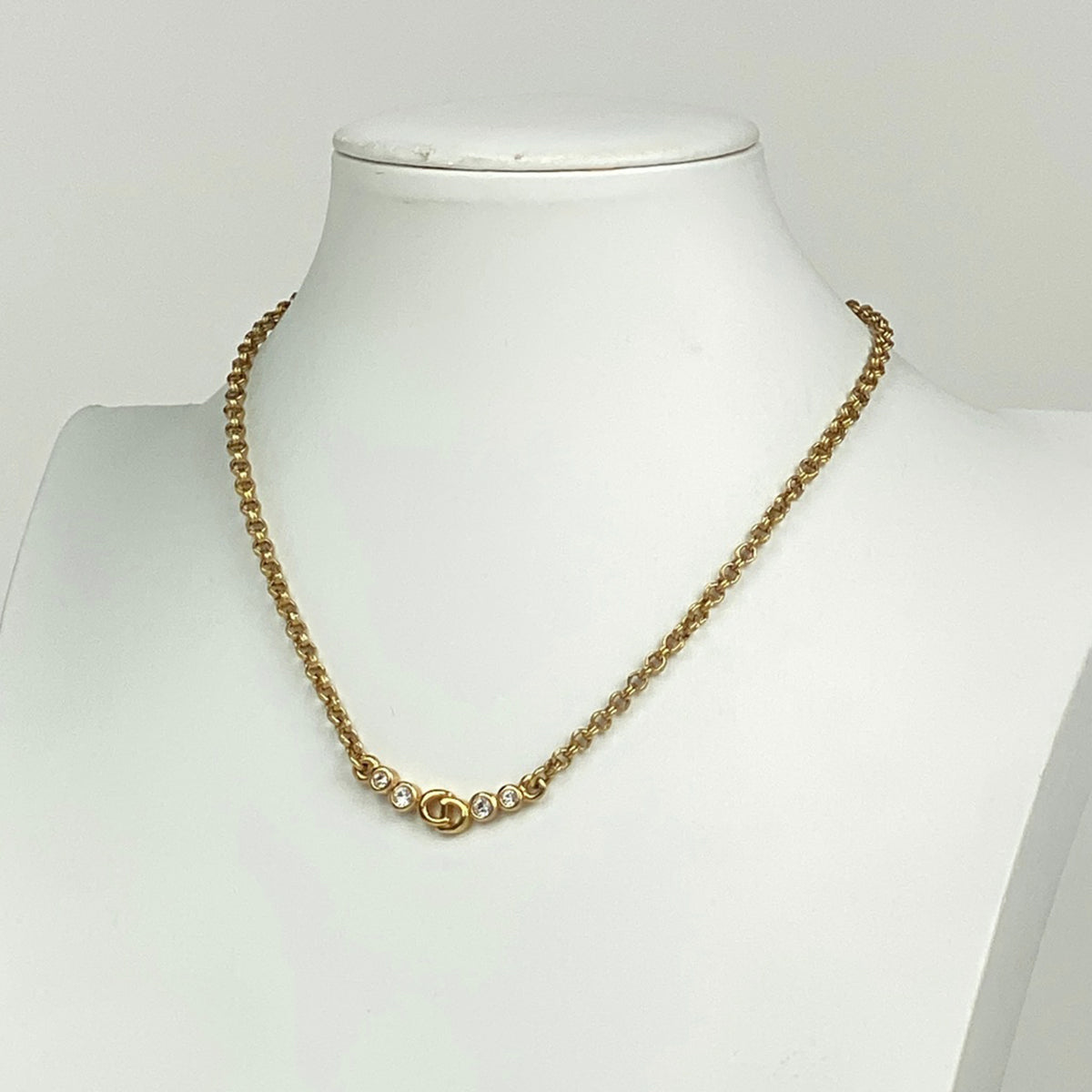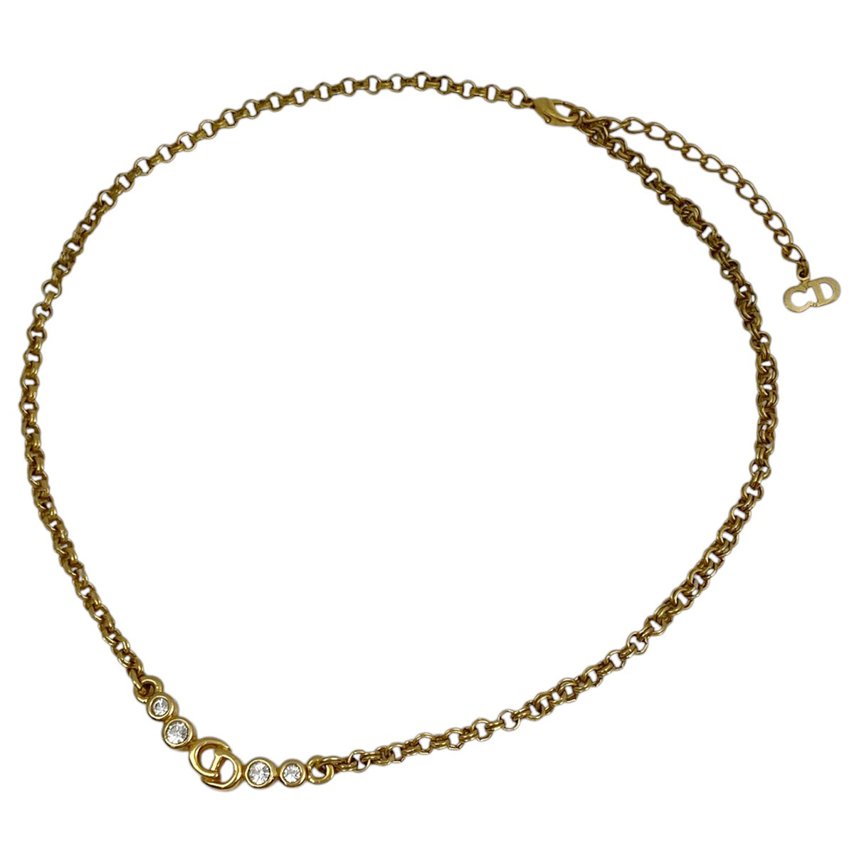 クリスチャンディオール ロゴ ラインストーン ネックレス CD ネックレス GP ラインストーン ゴールド レディース 【中古】bracc