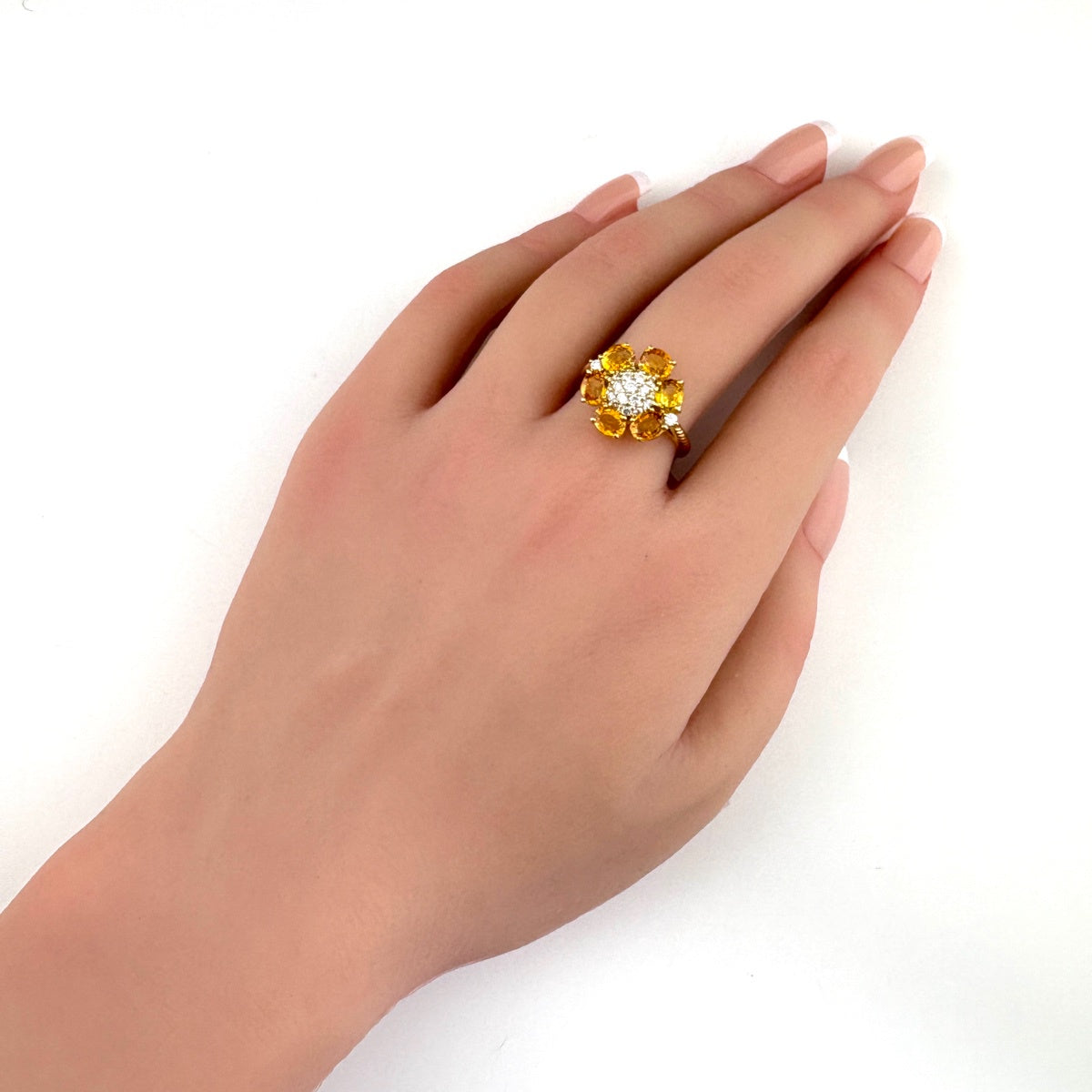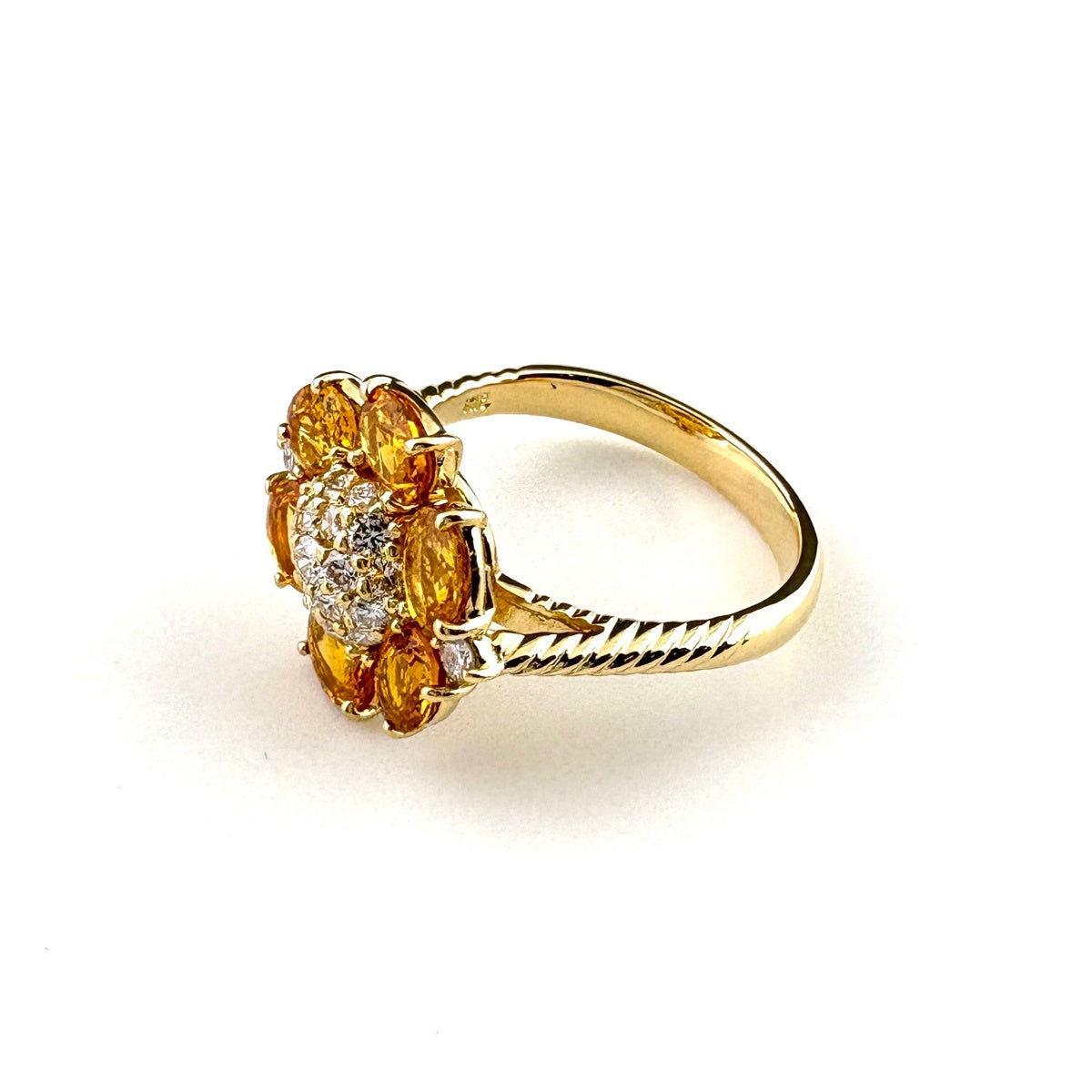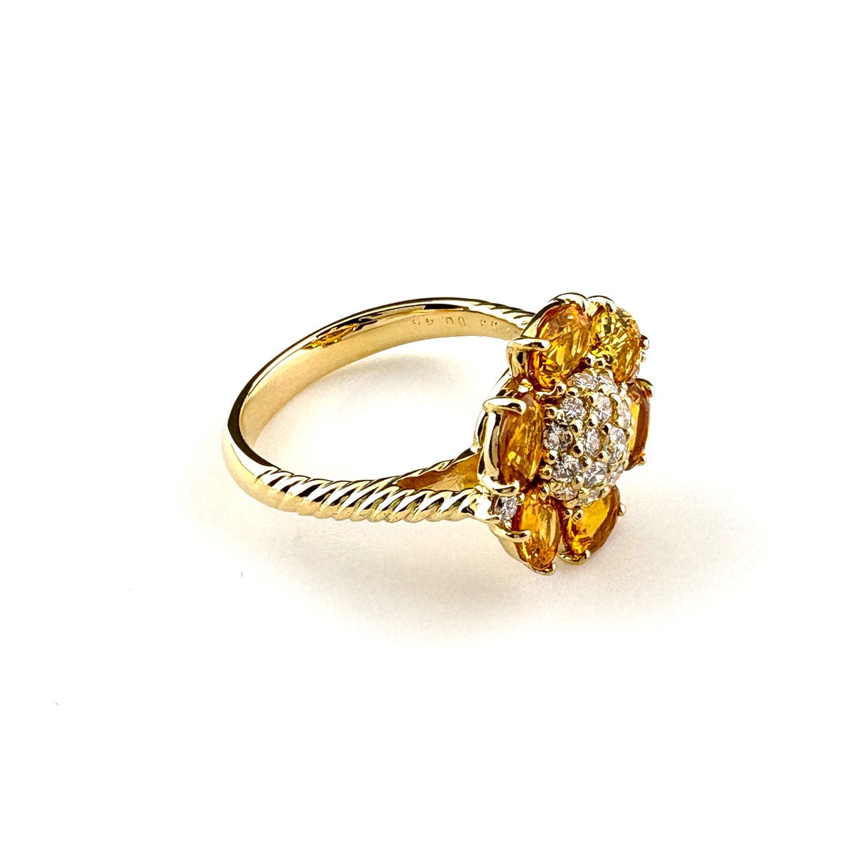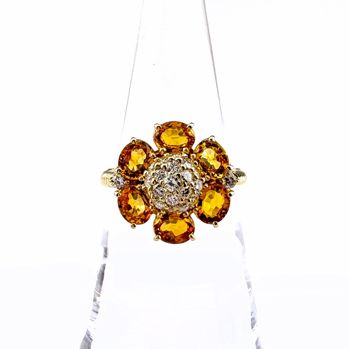フラワーモチーフ デザインリング YG イエローゴールド 指輪 メレダイヤ イエローサファイア 花 リング 14.5号 K18 ダイヤモンド イエローサファイア レディース ノンブランドジュエリー 【中古】nbjwl
