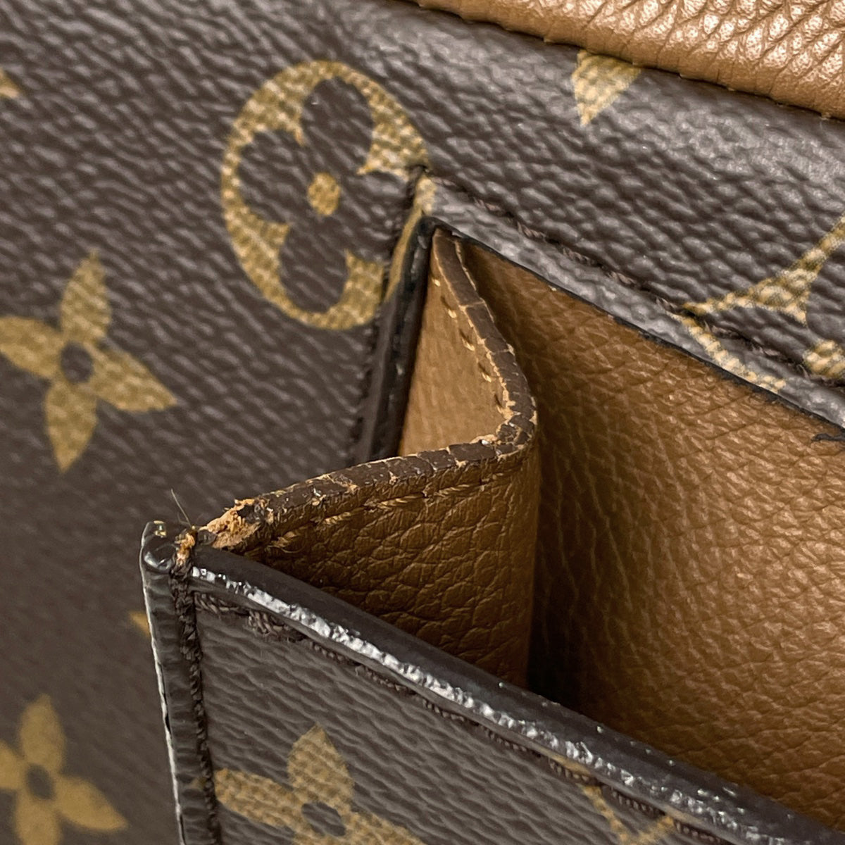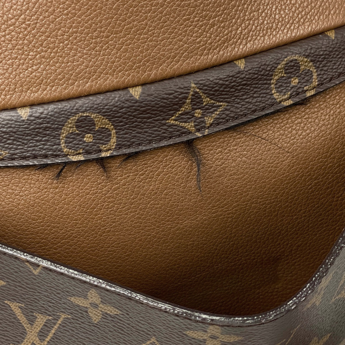 《オープンポケット》フチにひび割れ、剥がれ、内側に毛羽立ち、ほつれ、押し跡