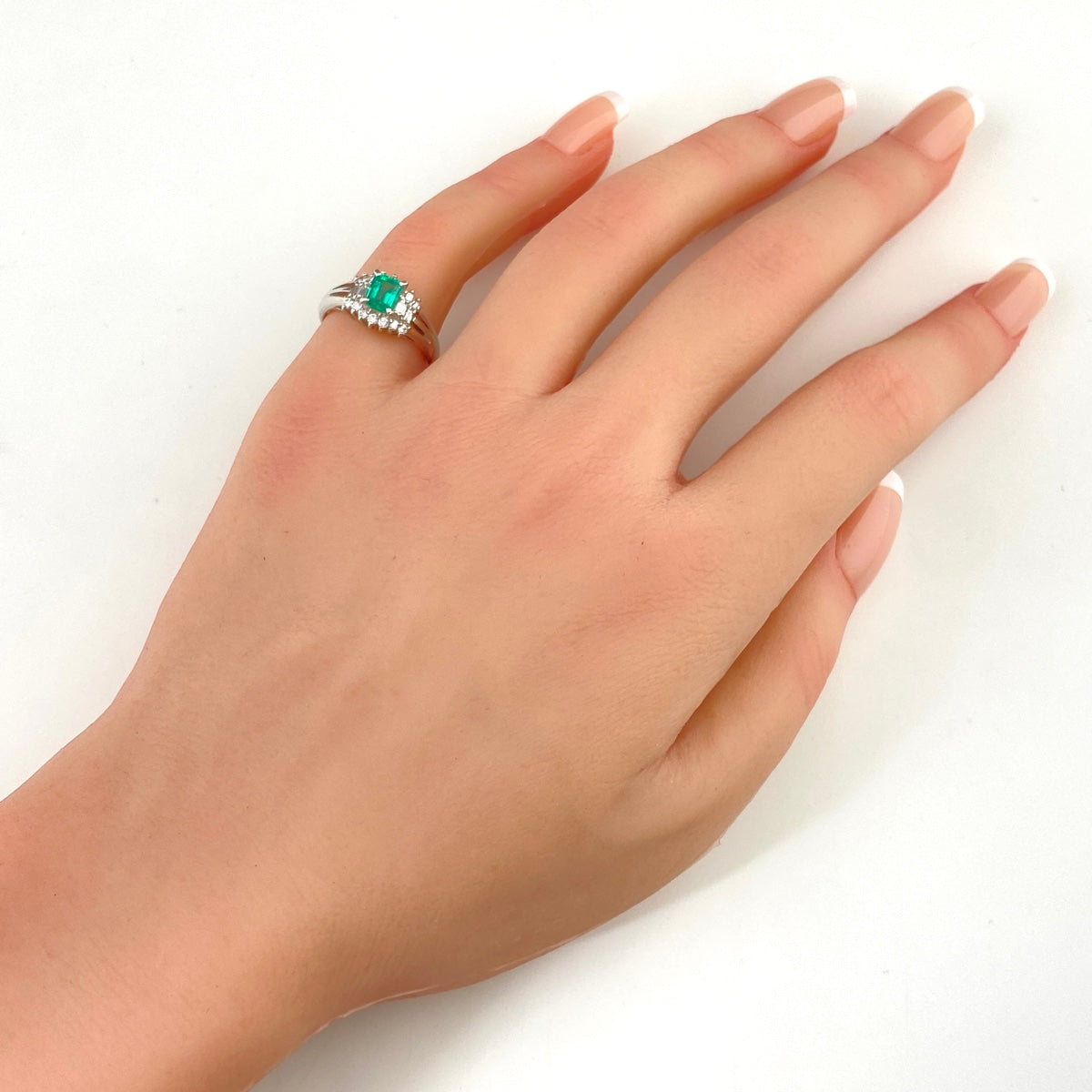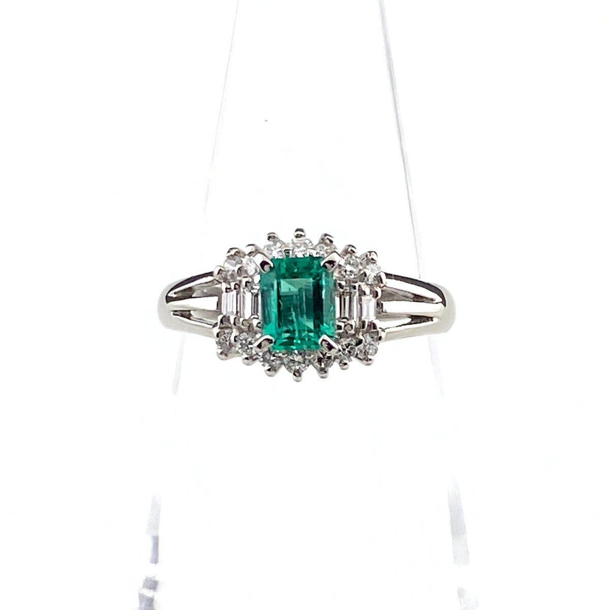 エメラルド デザインリング プラチナ 指輪 メレダイヤ リング 11号 Pt850 エメラルド ダイヤモンド レディース 【中古】nbjwl