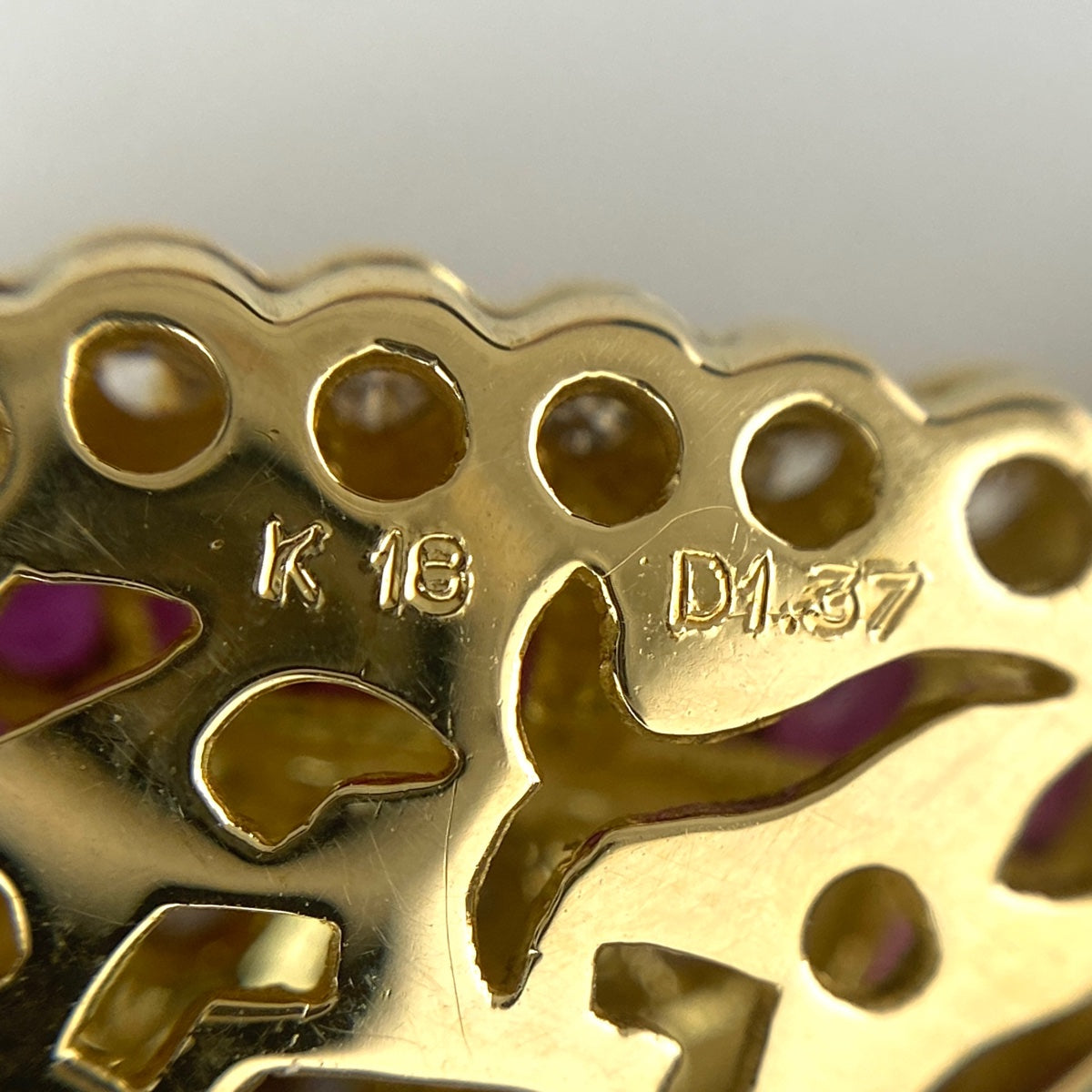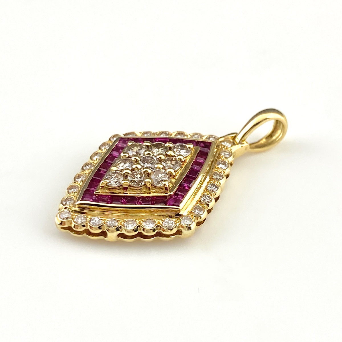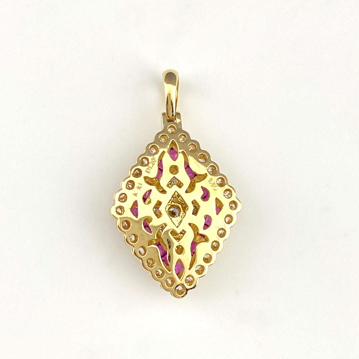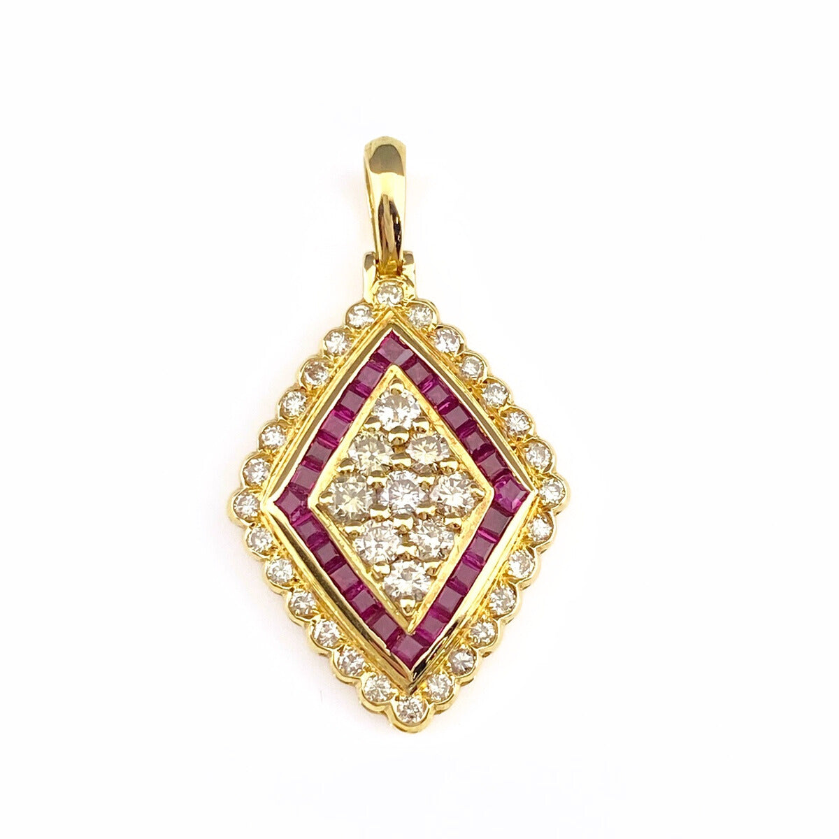 ルビー デザインペンダントトップ YG イエローゴールド メレダイヤ ペンダントトップ K18 ダイヤモンド レディース 【中古】nbjwl