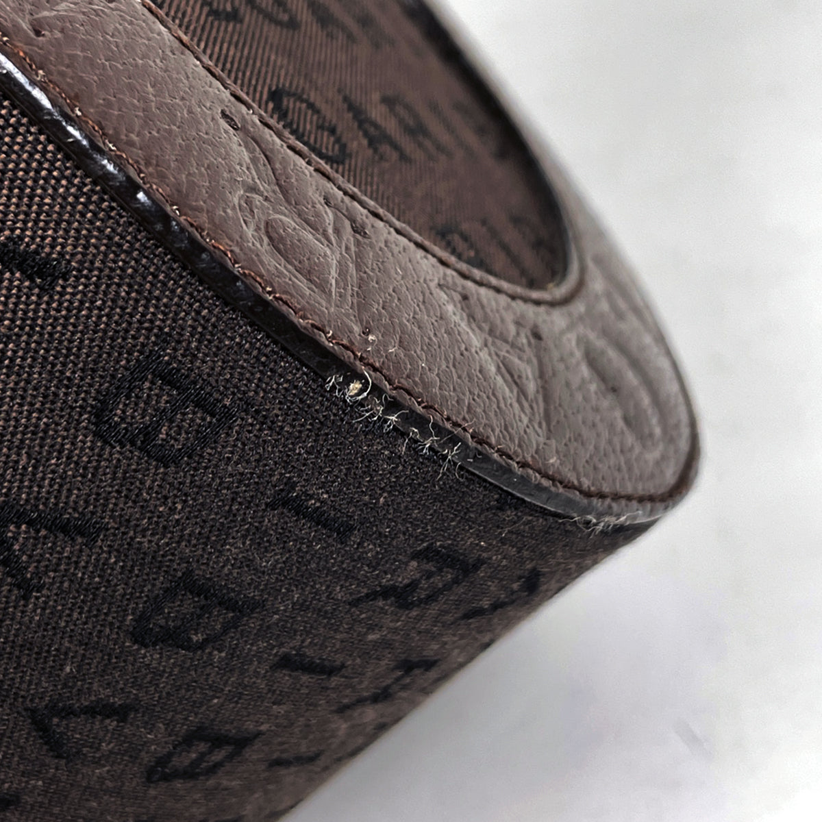 《フチ》レザーに繊維の付着