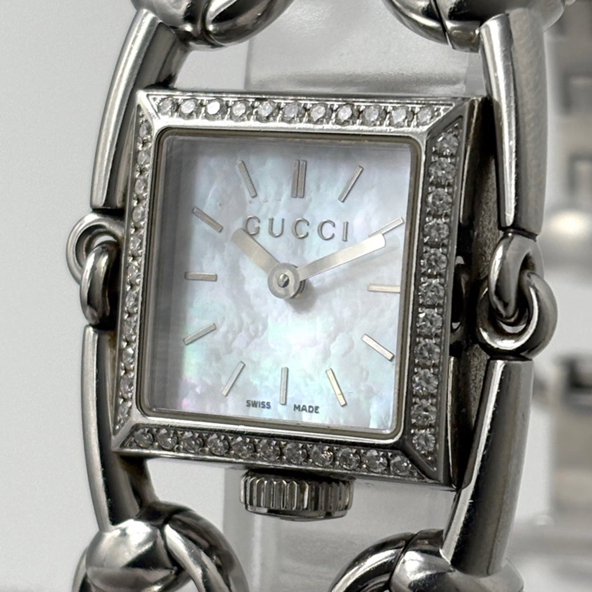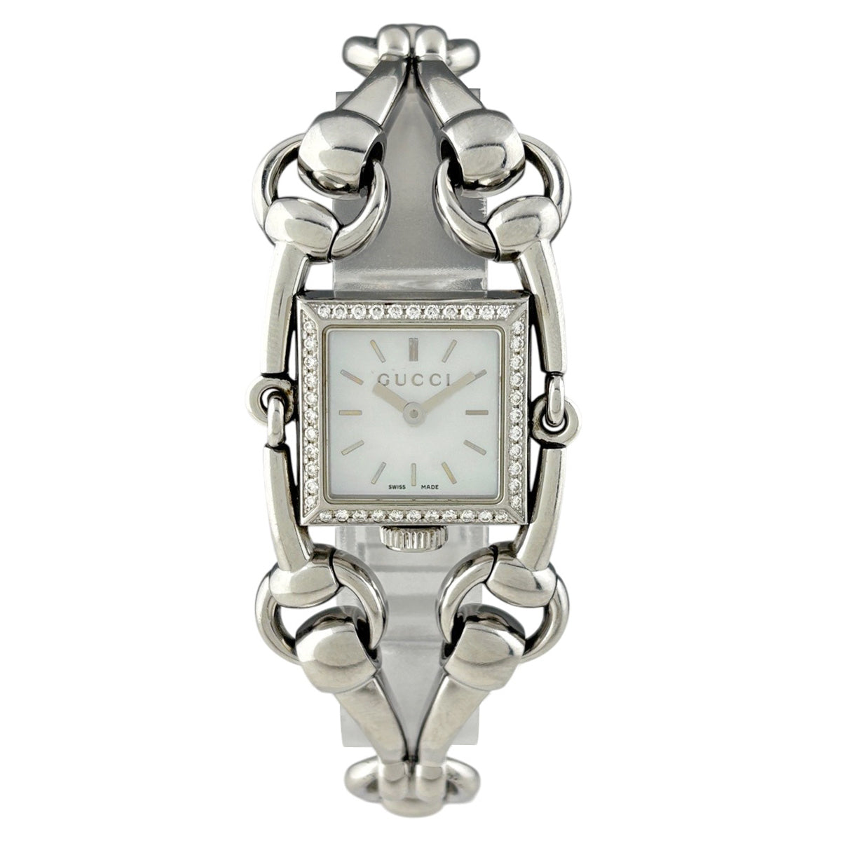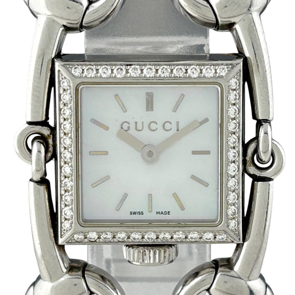 グッチ シニョーリア 116.5 腕時計 SS ダイヤモンド クォーツ ホワイト レディース 時計 【中古】wtcbb