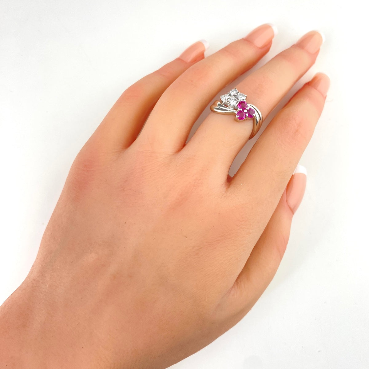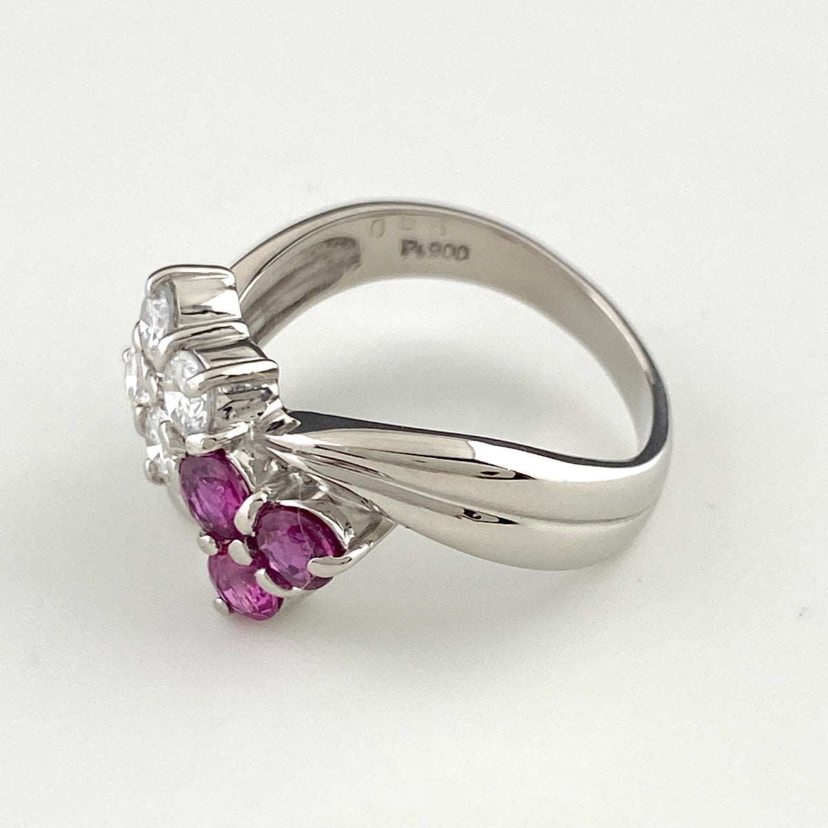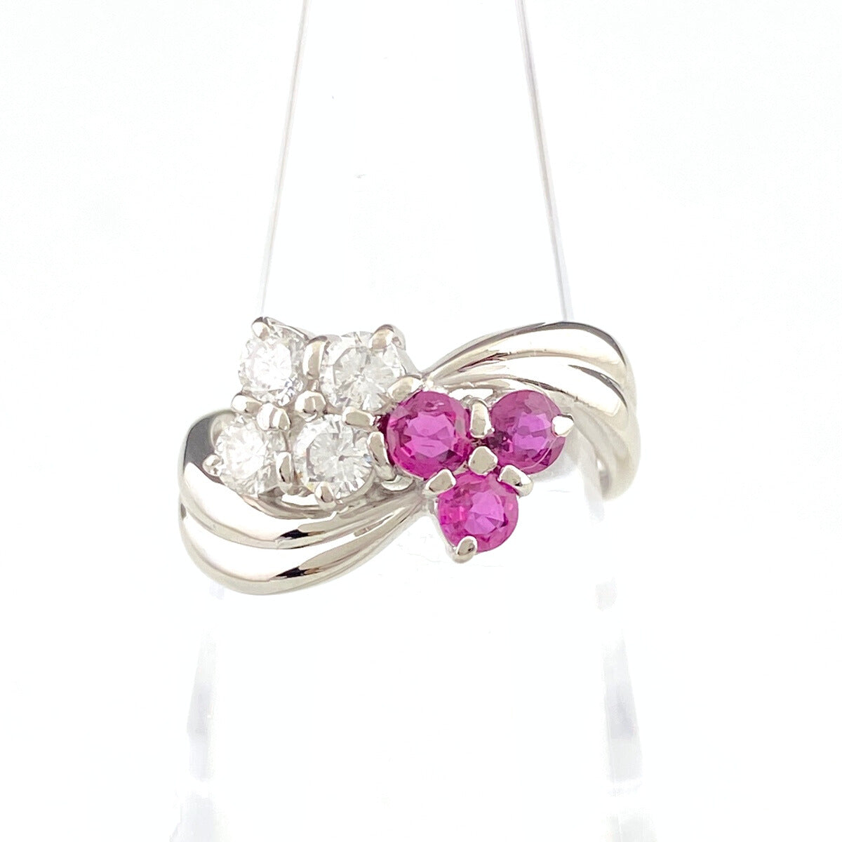 【状態良好】 フラワー リング プラチナ 指輪 ルビー メレダイヤ 花 12号 Pt900 ダイヤモンド レディース 【中古】nbjwl