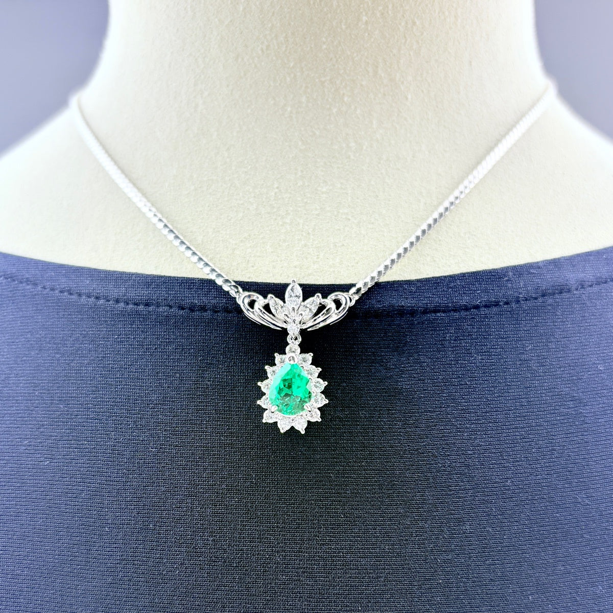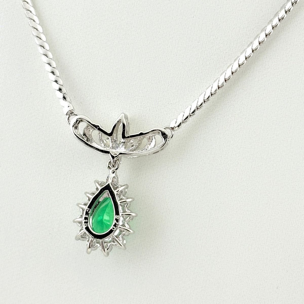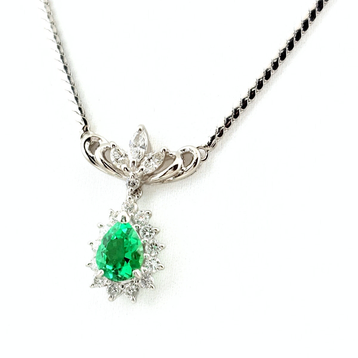 約40cm エメラルド ネックレス プラチナ ペンダント メレダイヤ Pt850 エメラルド ダイヤモンド レディース 【中古】nbjwl