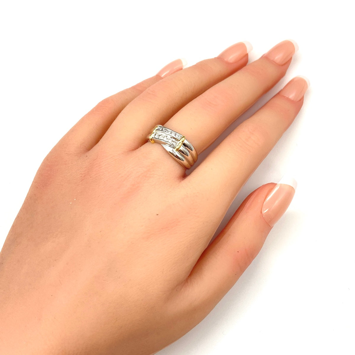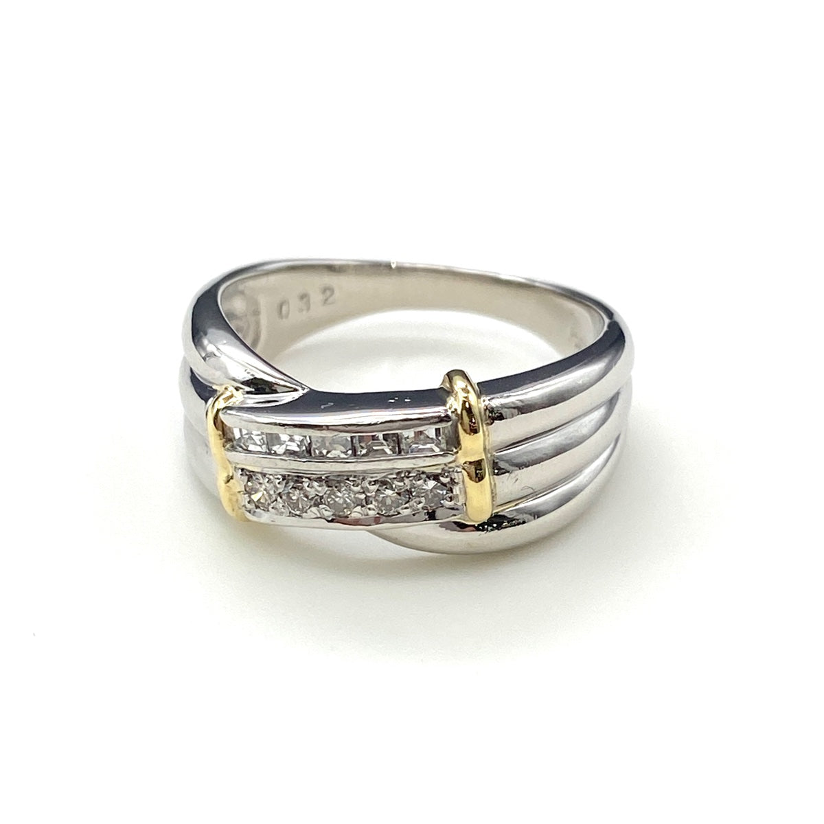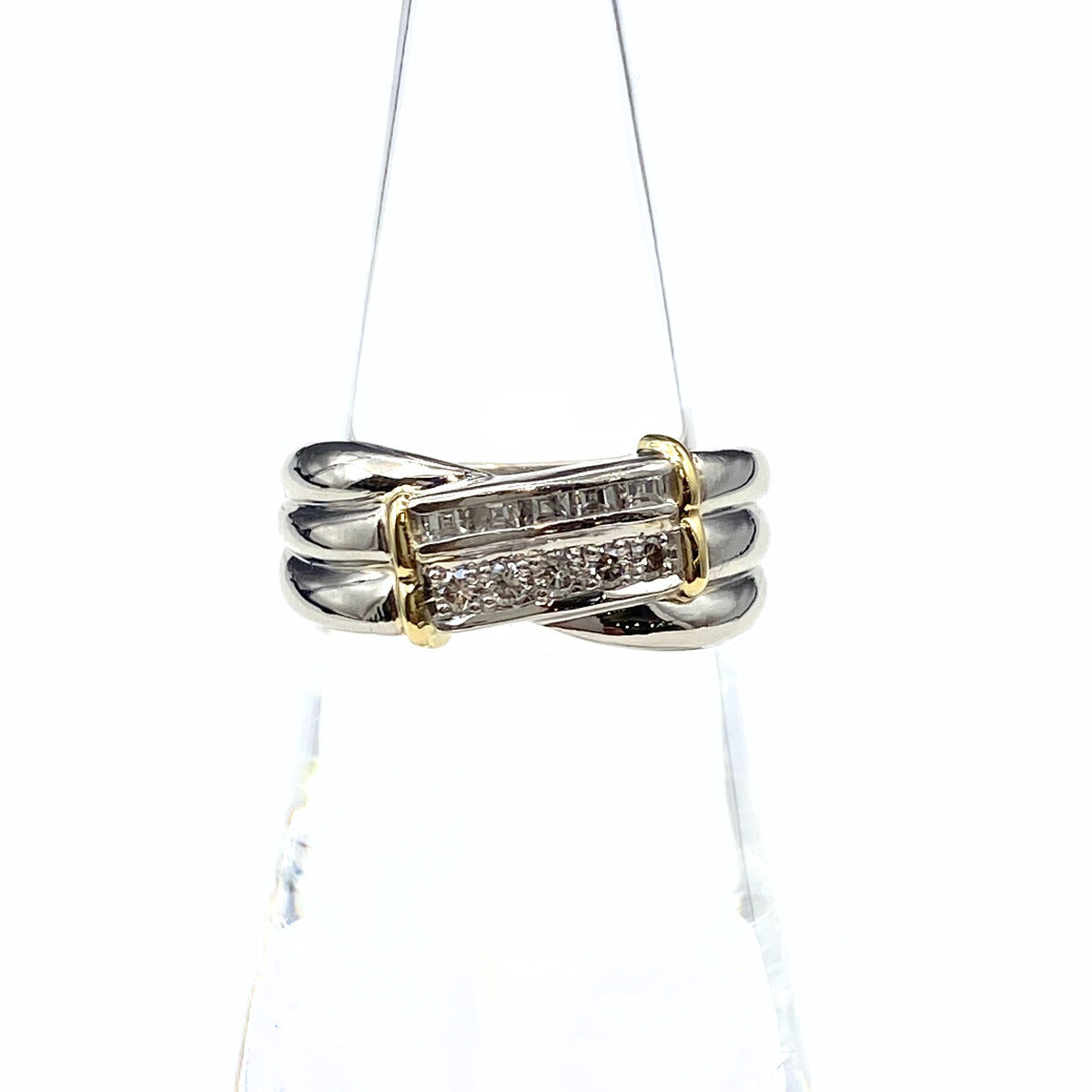 メレダイヤ デザインリング プラチナ YG イエローゴールド 指輪 リング 15号 Pt900 K18 ダイヤモンド レディース 【中古】nbjwl