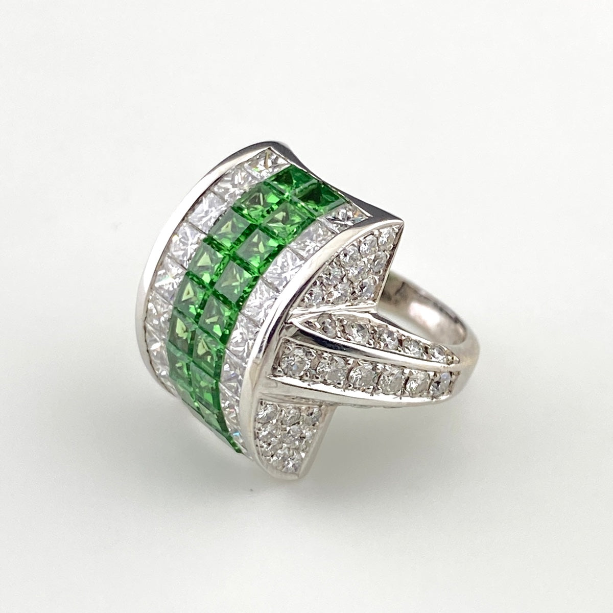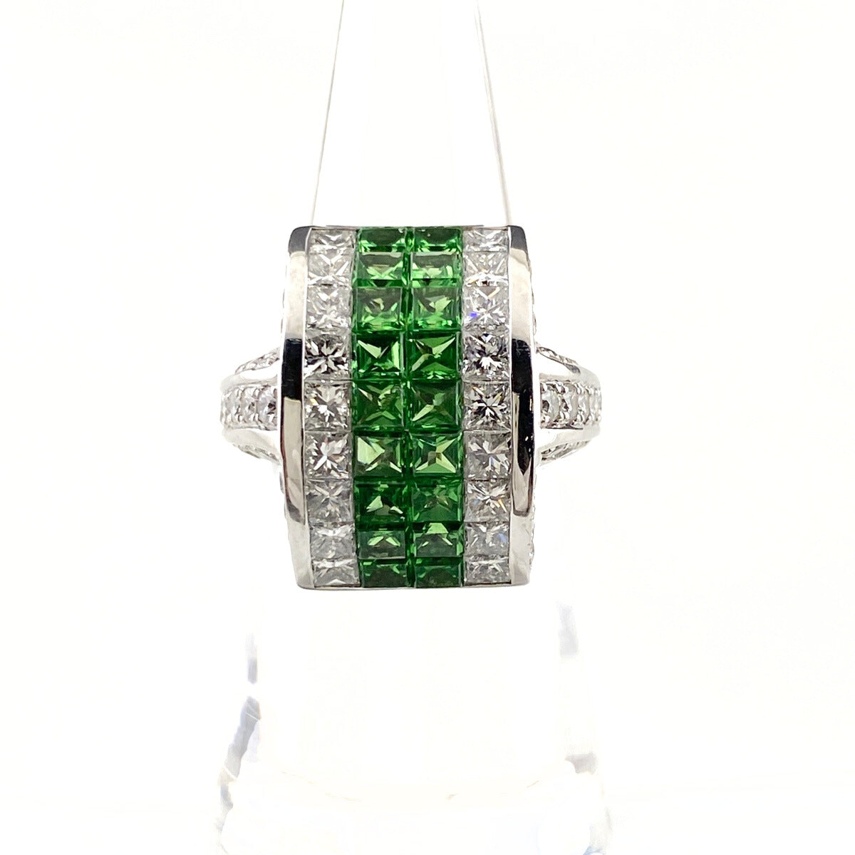 グリーングロッシュラーガーネット デザインリング 指輪 メレダイヤ リング 9号 K18 ダイヤモンド グリーングロッシュラーガーネット レディース 【中古】nbjwl