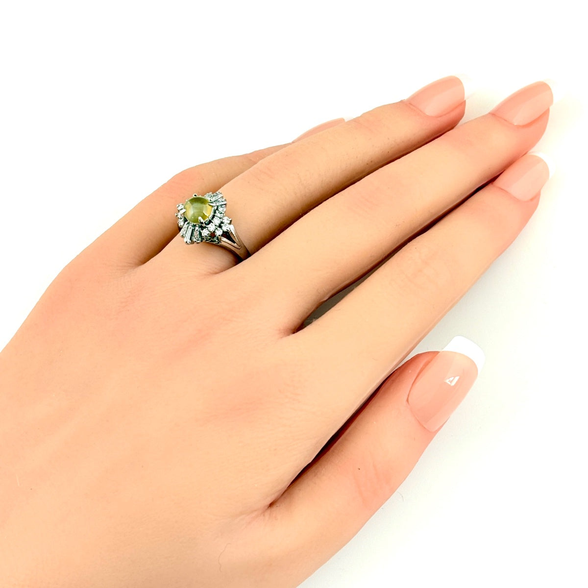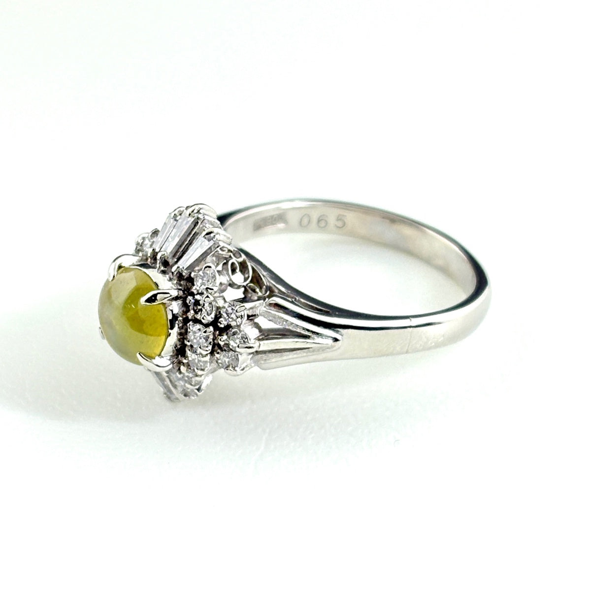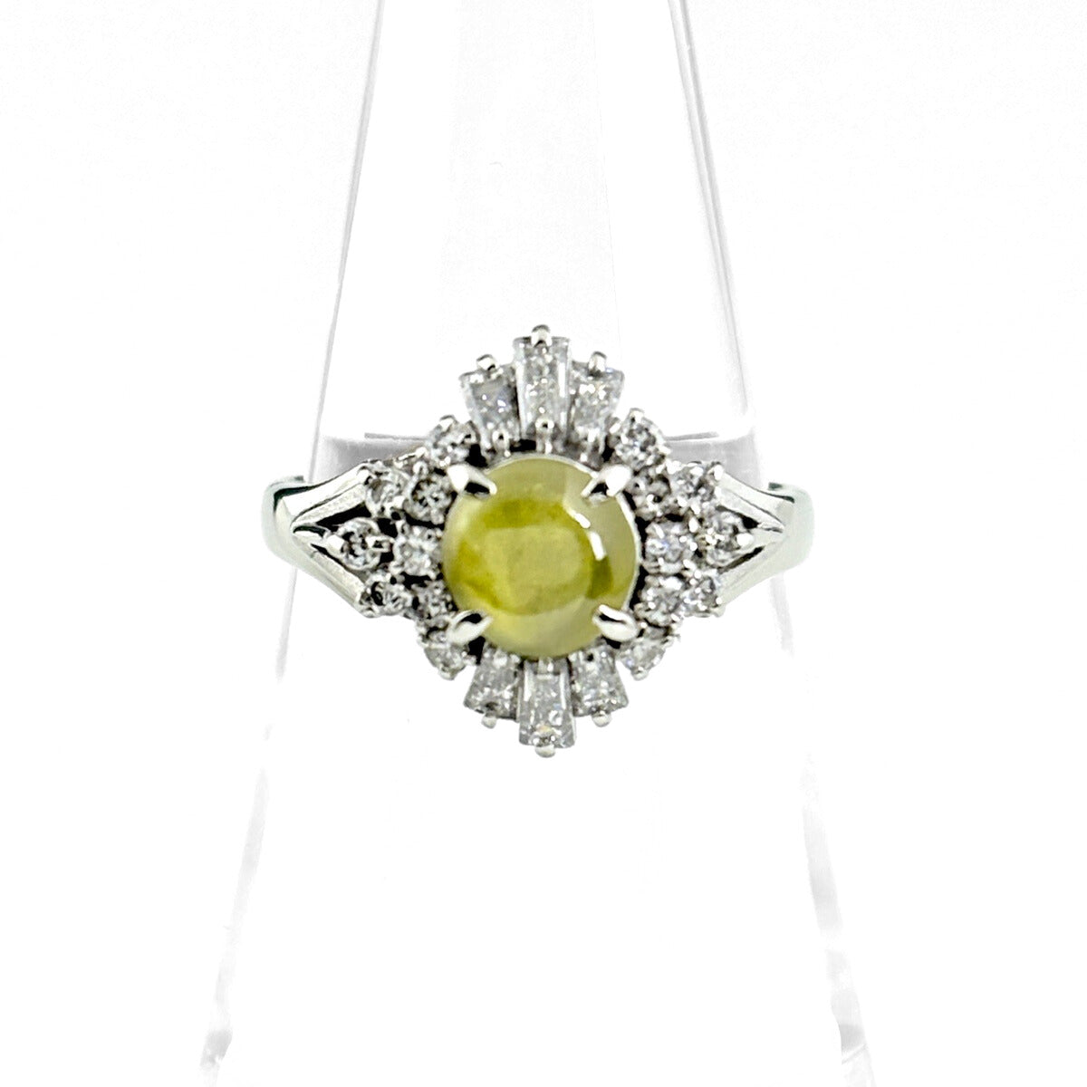 クリソベリルキャッツアイ デザインリング プラチナ 指輪 メレダイヤ リング 13号 Pt900 クリソベリルキャッツアイ ダイヤモンド レディース ノンブランドジュエリー 【中古】nbjwl
