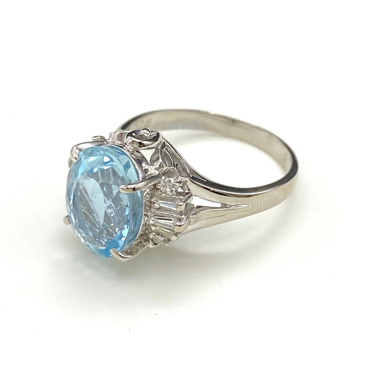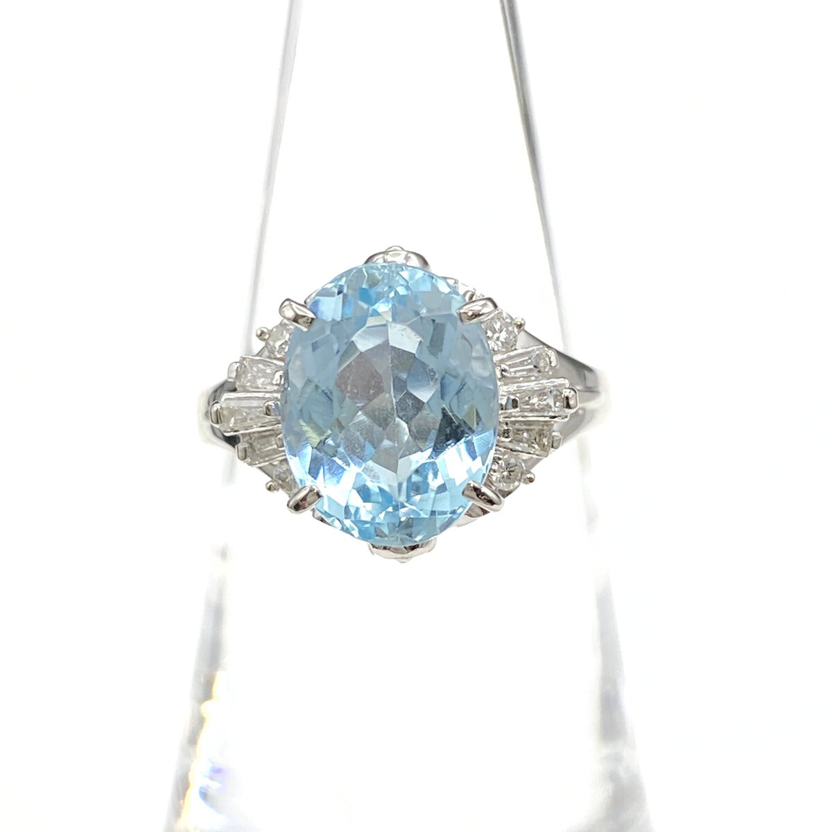 アクアマリン デザインリング プラチナ メレダイヤ 指輪 リング 12号 Pt900 アクアマリン ダイヤモンド レディース 【中古】nbjwl