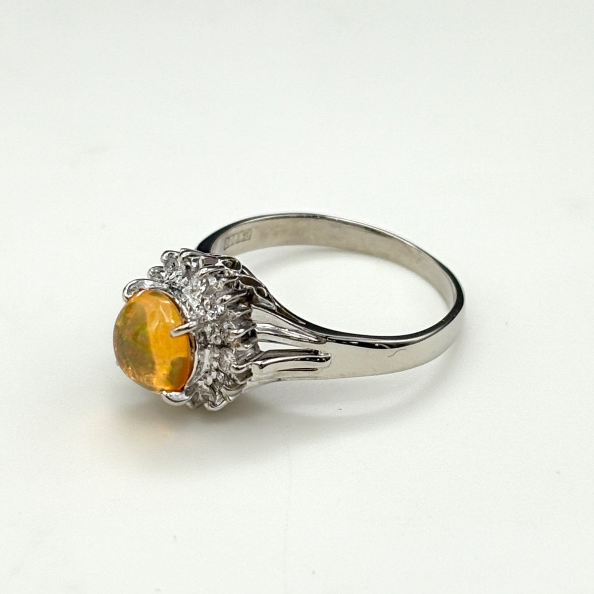 ファイアオパール デザインリング プラチナ 指輪 メレダイヤ リング 10.5号 Pt900 ダイヤモンド ファイアオパール レディース ノンブランドジュエリー 【中古】nbjwl