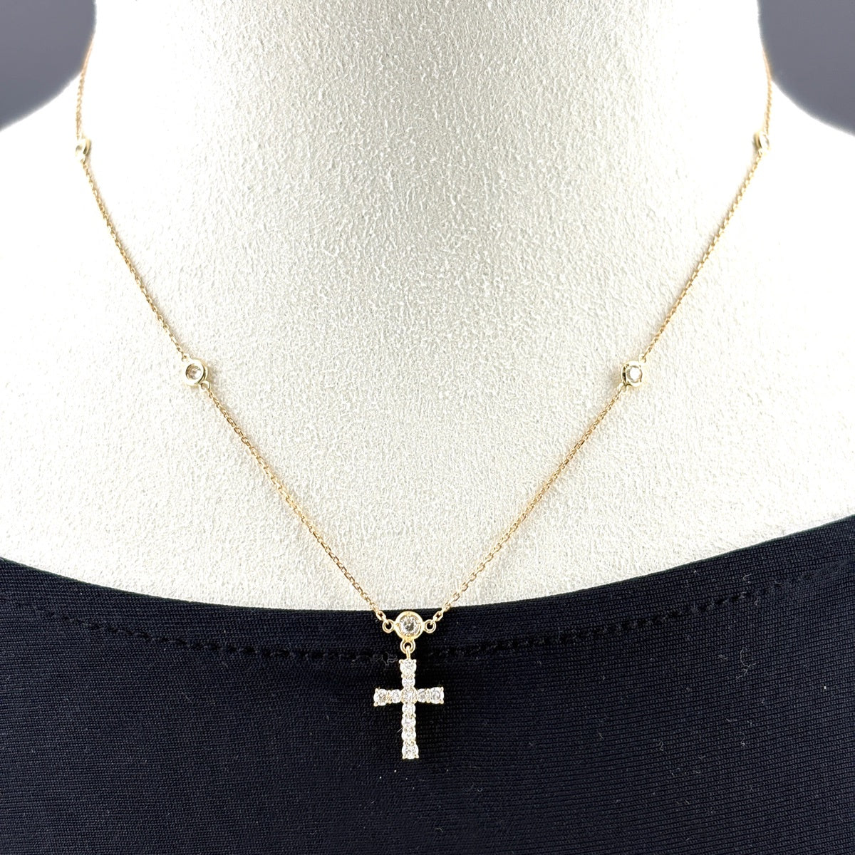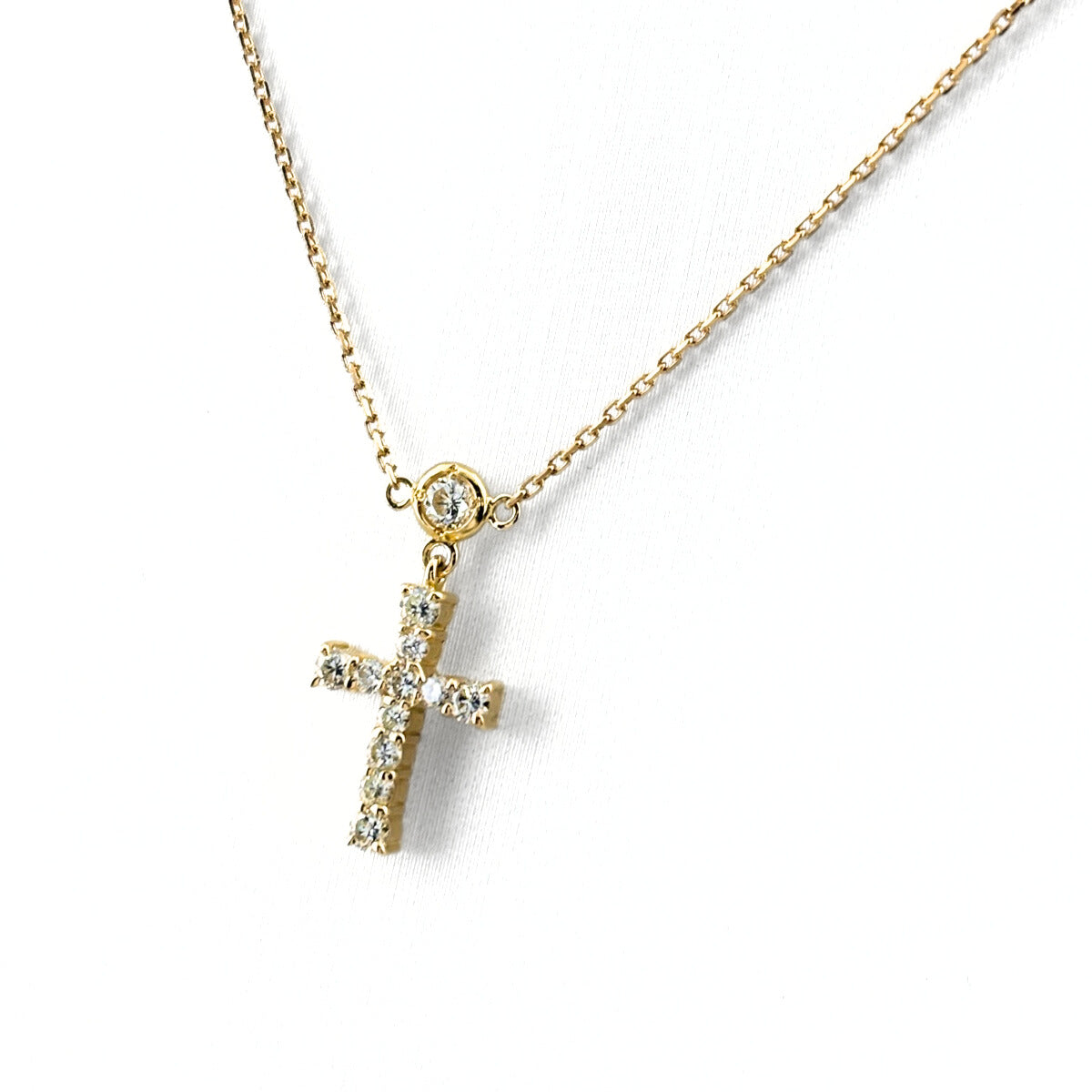 ライン YG イエローゴールド ペンダント メレダイヤ 十字架