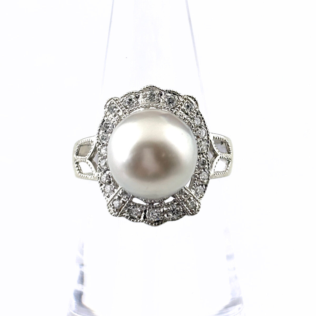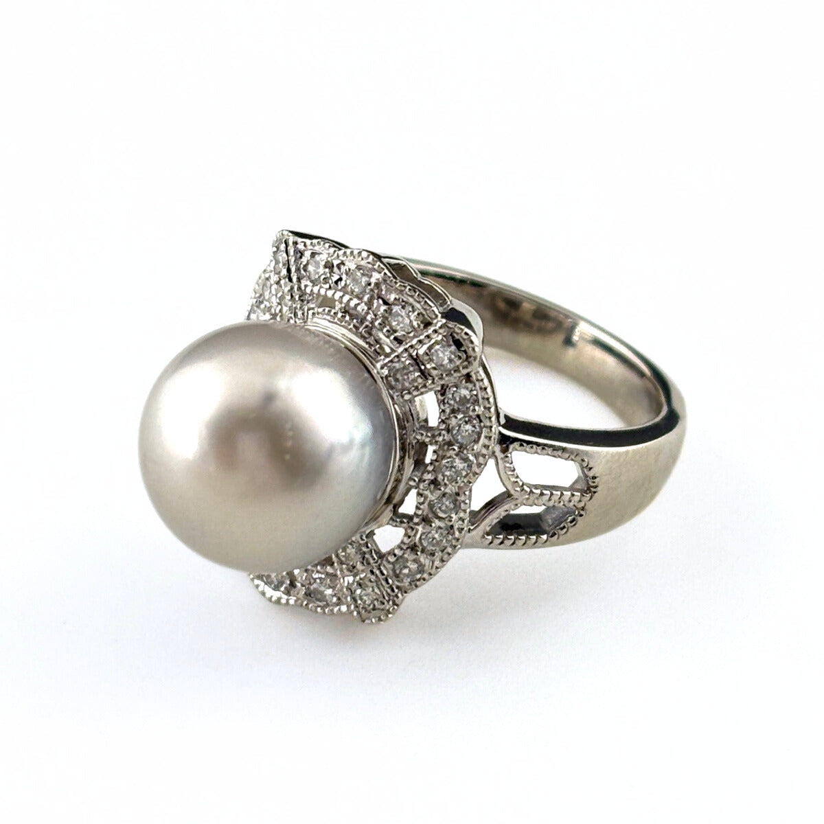 パール デザインリング プラチナ 指輪 真珠 メレダイヤ リング 12号 Pt900 パール ダイヤモンド レディース ノンブランドジュエリー 【中古】nbjwl