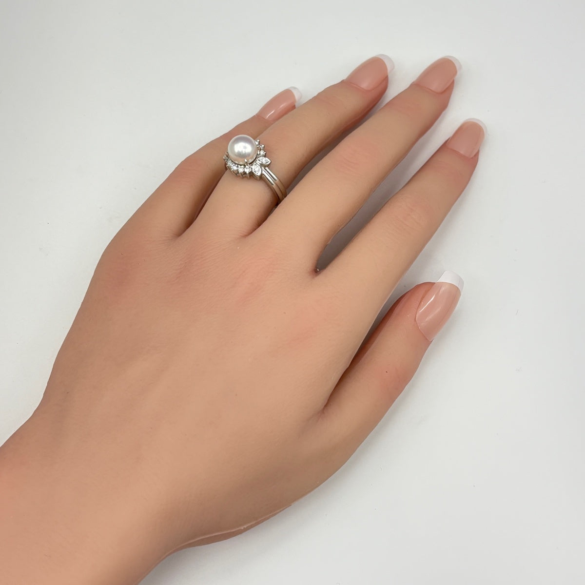ライン プラチナ 指輪 メレダイヤ 真珠
