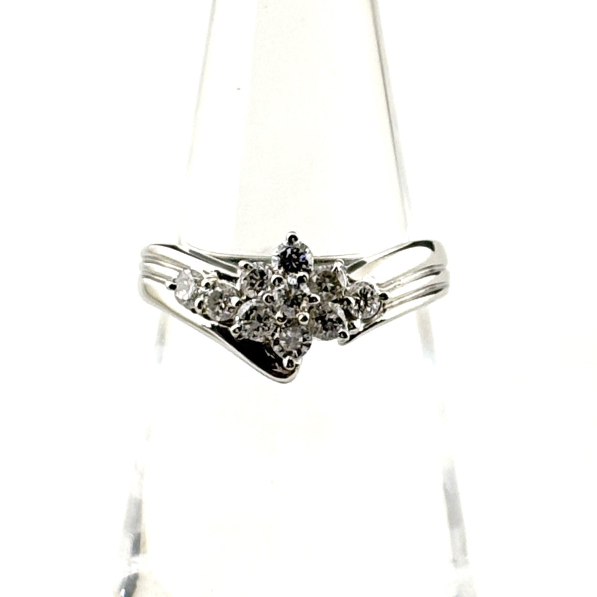 フラワーモチーフ デザインリング プラチナ 指輪 花 リング 10号 Pt900 ダイヤモンド レディース ノンブランドジュエリー 【中古】nbjwl