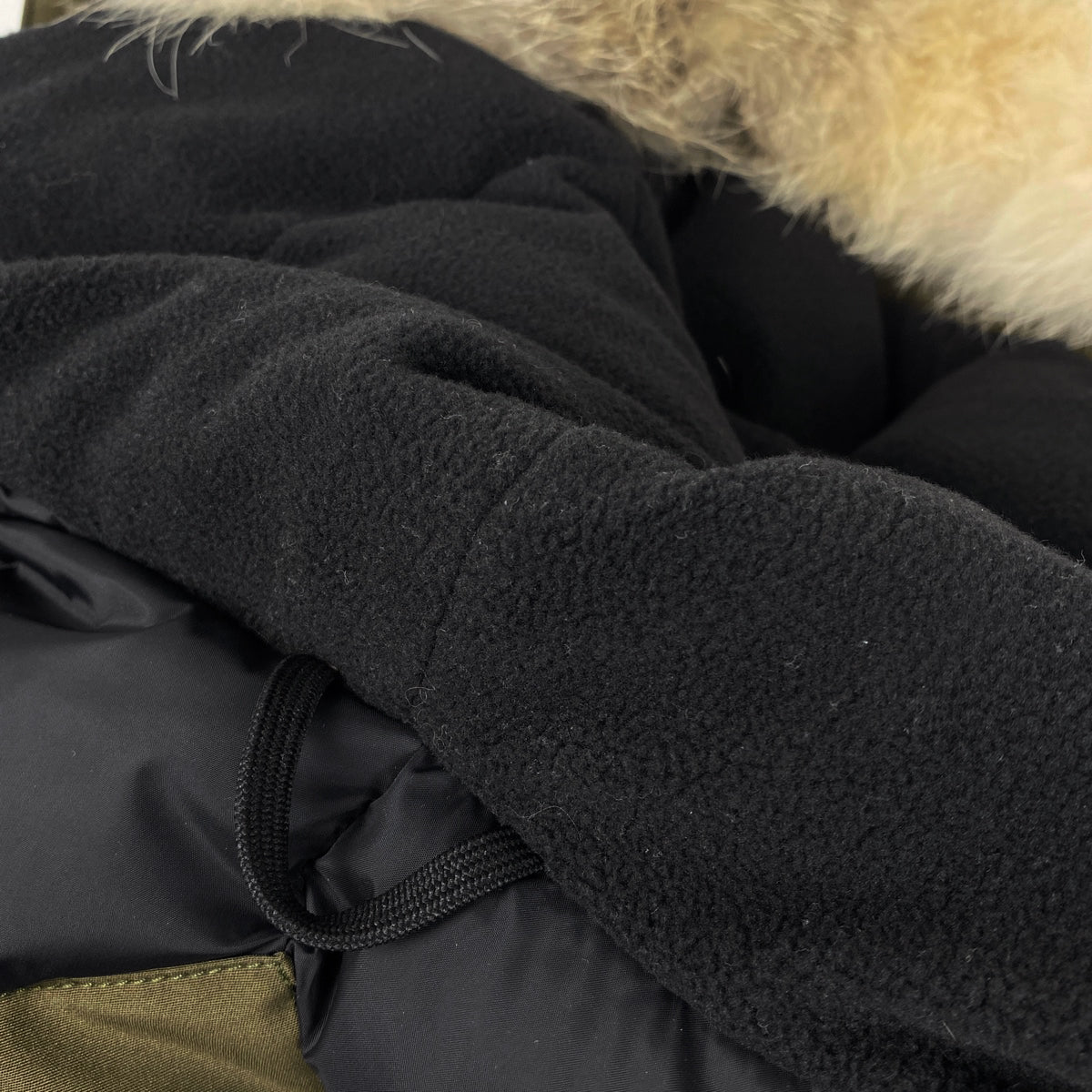 コメント 表地:ポリエステル85%、綿15%、中綿:ダウン80%、フェザー20%、毛皮部分:コヨーテ