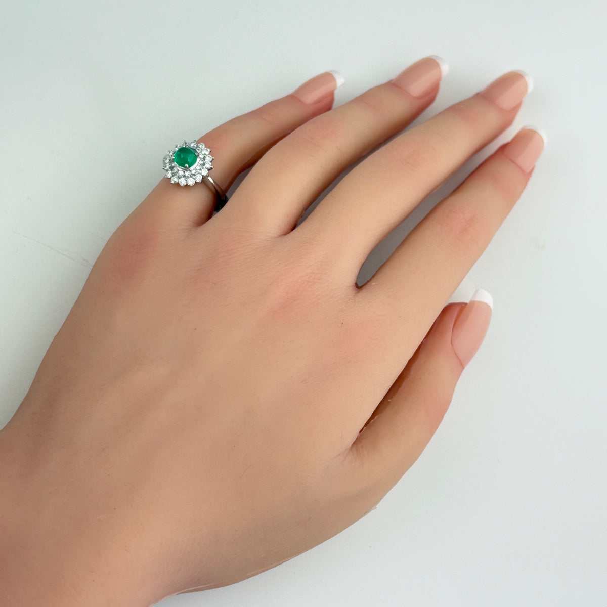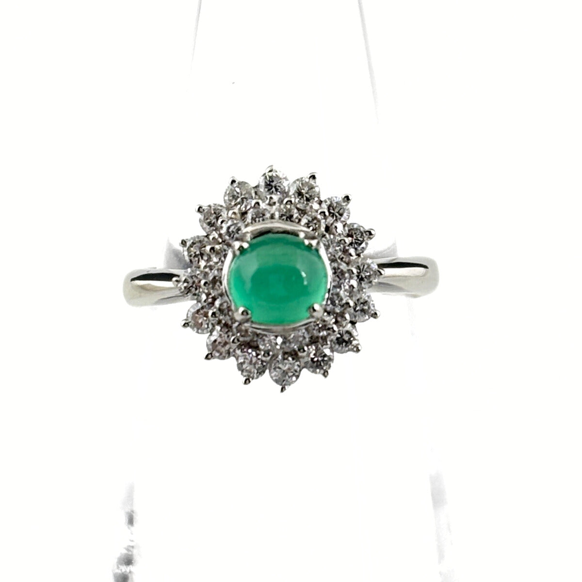 エメラルドキャッツアイ デザインリング プラチナ 指輪 メレダイヤ リング 8.4 Pt900 エメラルドキヤッツアイ レディース ノンブランドジュエリー 【中古】nbjwl
