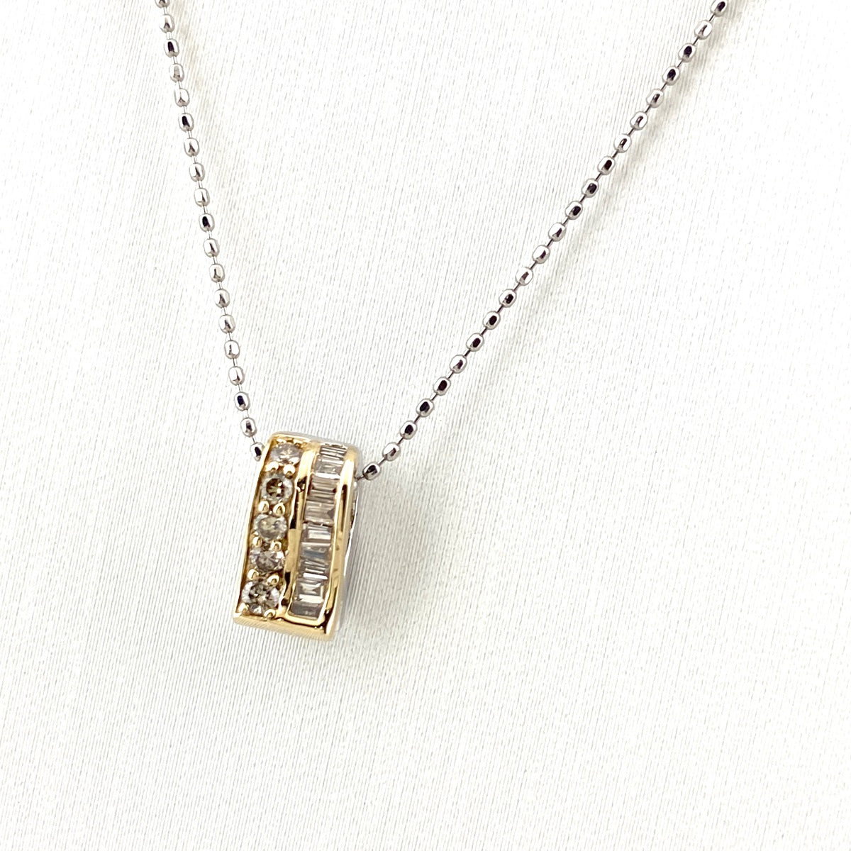 ライン プラチナ YG イエローゴールド ペンダント トリートメントダイヤ