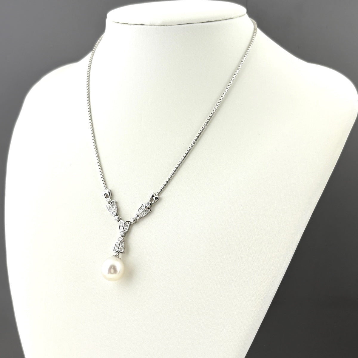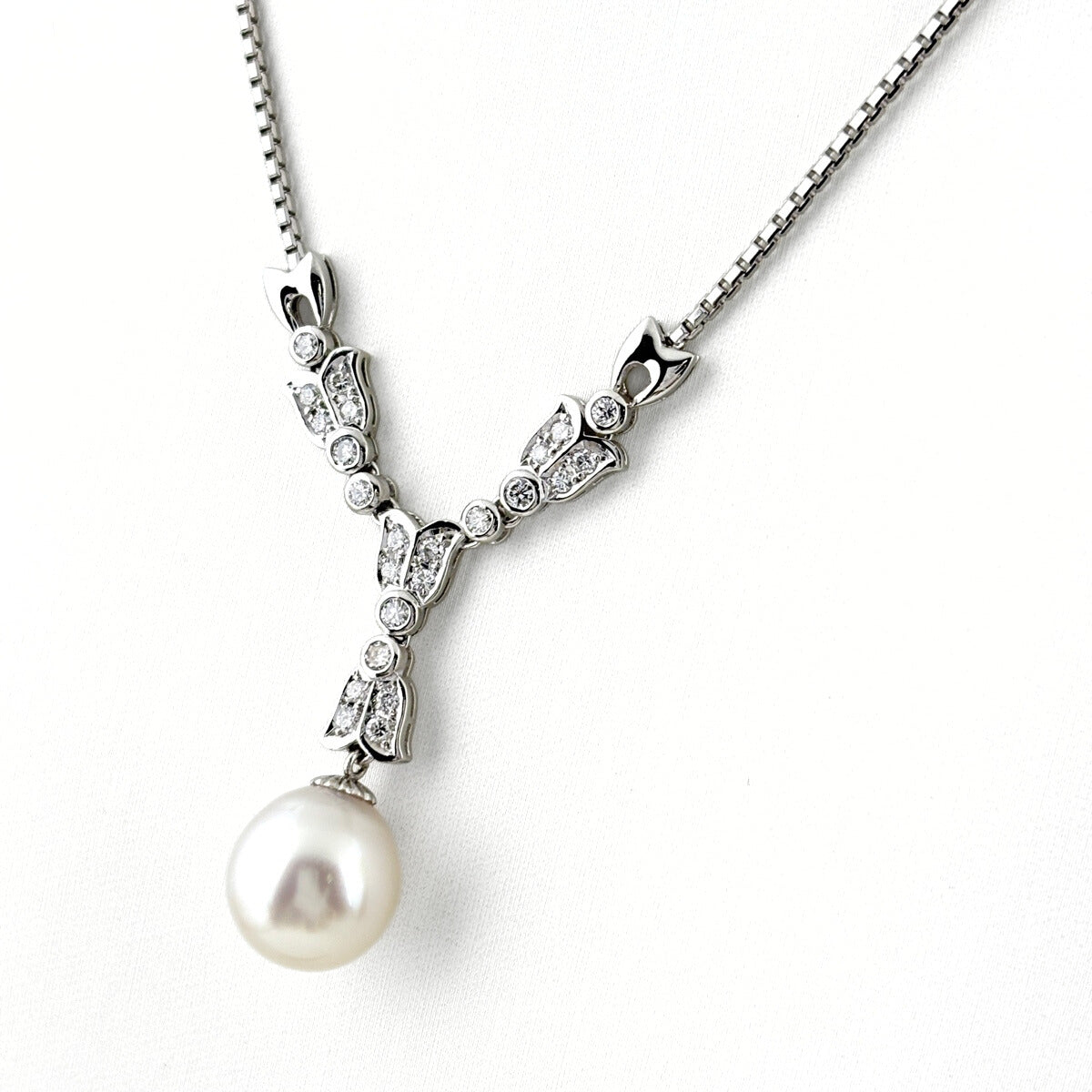 パール デザインネックレス プラチナ ペンダント メレダイヤ 真珠 ネックレス Pt900 Pt850 パール レディース ノンブランドジュエリー 【中古】nbjwl