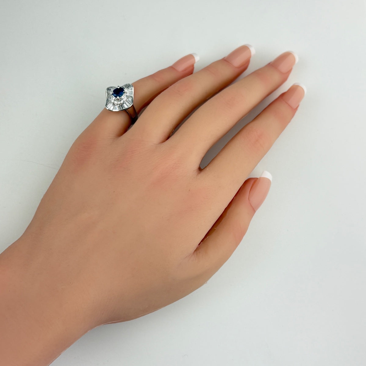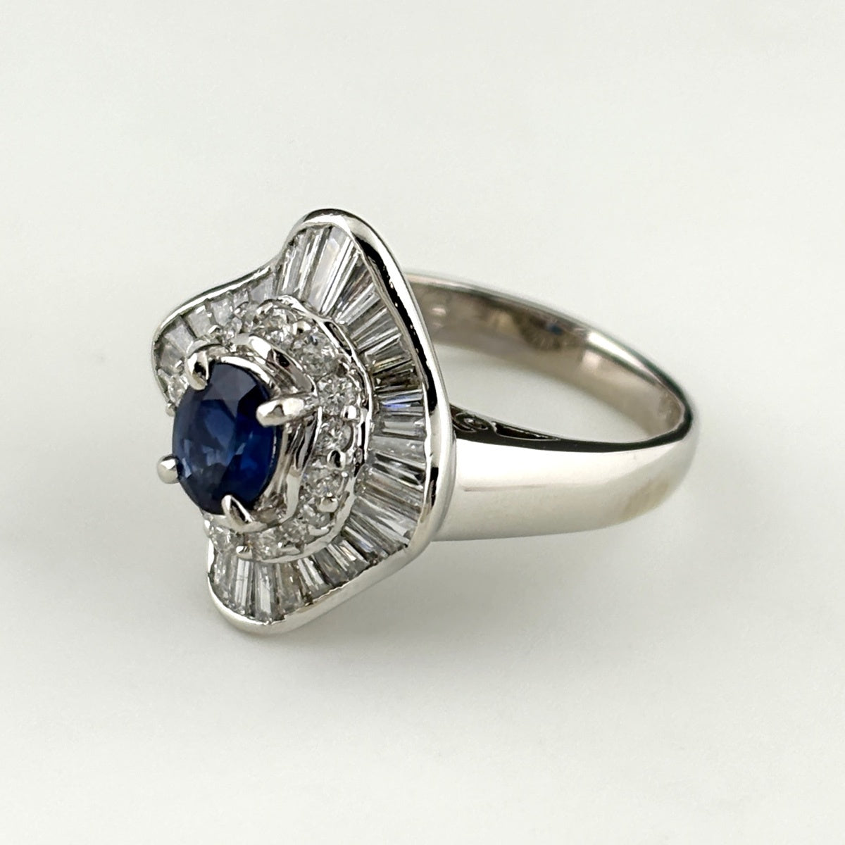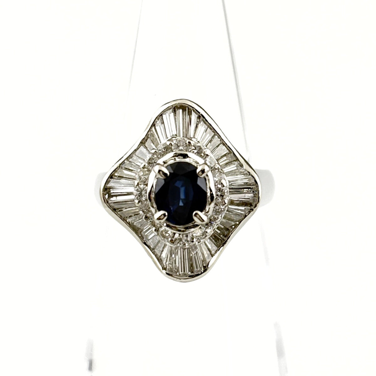サファイア デザインリング プラチナ 指輪 メレダイヤ リング 8.5号 Pt900 サファイア ダイヤモンド レディース ノンブランドジュエリー 【中古】nbjwl