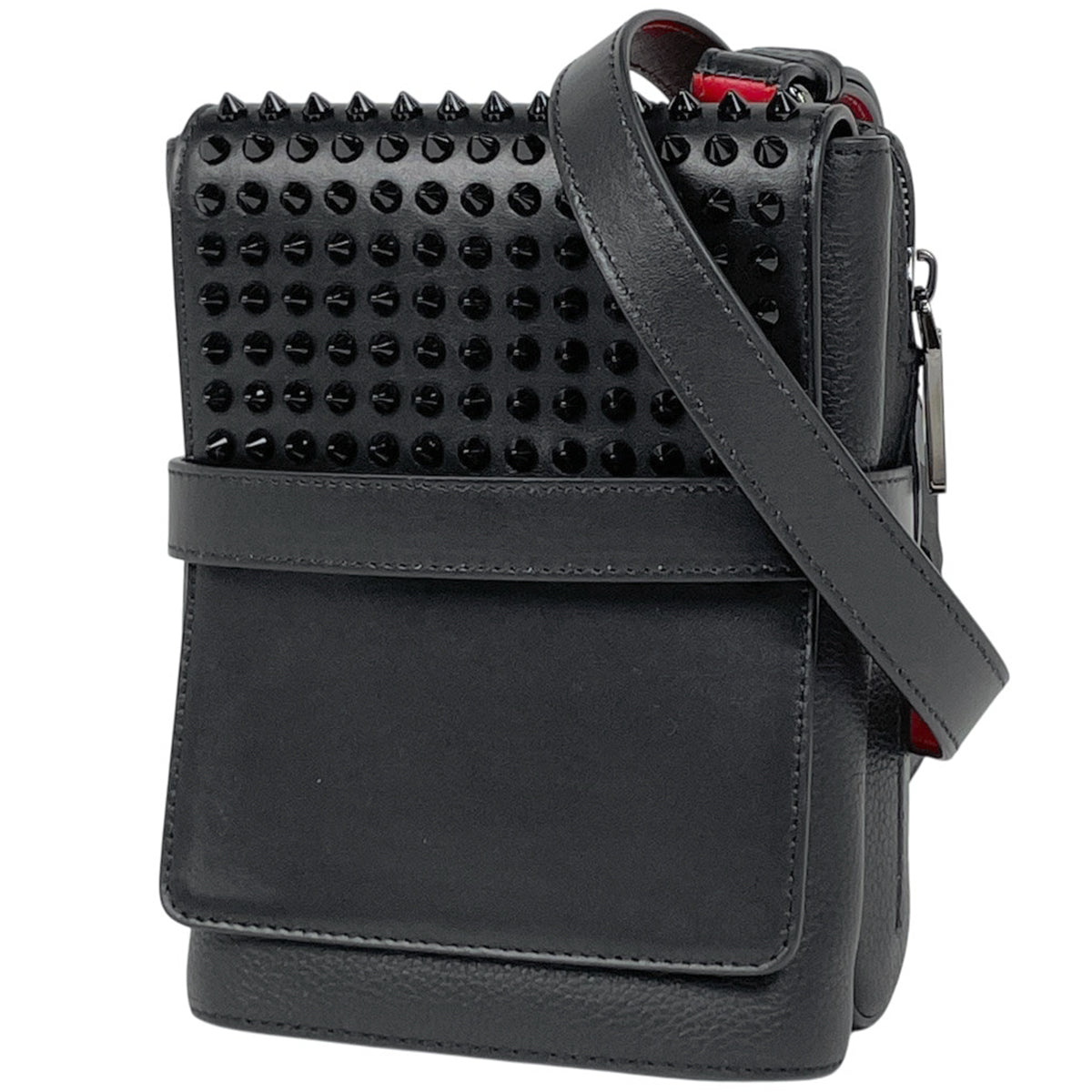 クリスチャンルブタン ロゴ ショルダーバッグ ベンチリポーター スパイク スタッズ ショルダーバッグ レザー ブラック レディース 【中古】brbag